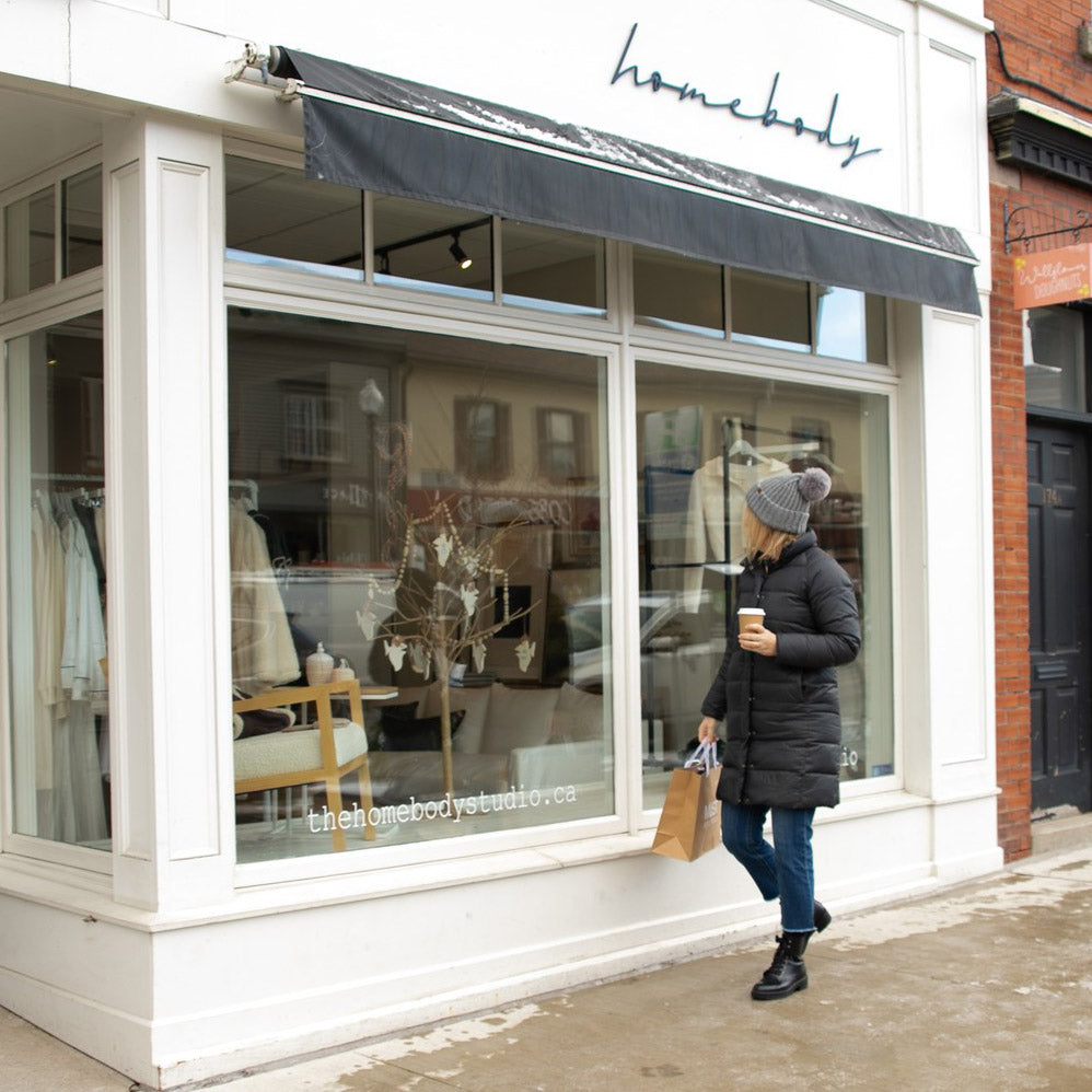 In 2020, Michele & Leon’s daughter Claire followed in her parent's footsteps and launched the sister store to Housewarmings right next to that very place where it all began: 176 Lakeshore Road. Appropriately named 'Homebody', this lifestyle boutique offers fashion, jewelry, footwear, accessories perfectly blended with interiors & gift ideas.