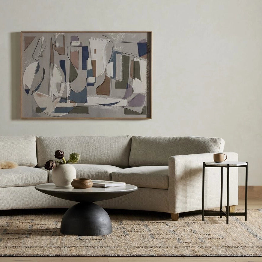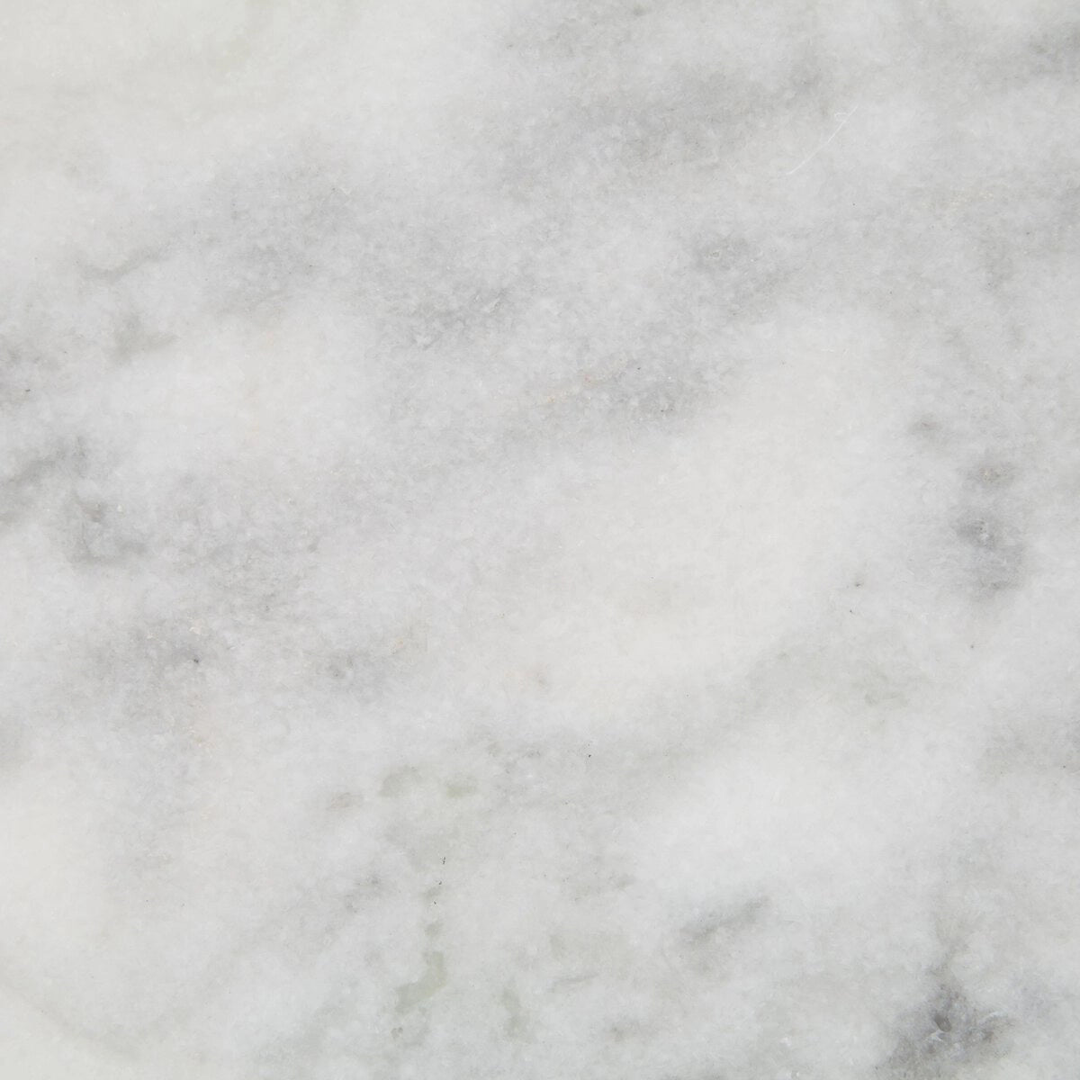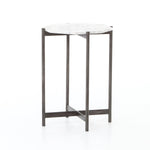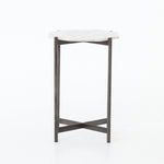 Opposites do tend to attract. A leggy base in rough, hammered-grey aluminum plays up a refined, precisely shaped white marble top.