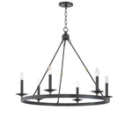 Streamlining a wagon-wheel chandelier with hook-and-hoop rods, Allendale breathes new life into a classic. Available in one-to-three-tier and rectangle versions, its sphere details and vastly different finishes refine the rustic.