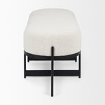 Indulgent bouclé fabric sits atop a sturdy iron frame to create a must-have upholstered bench.