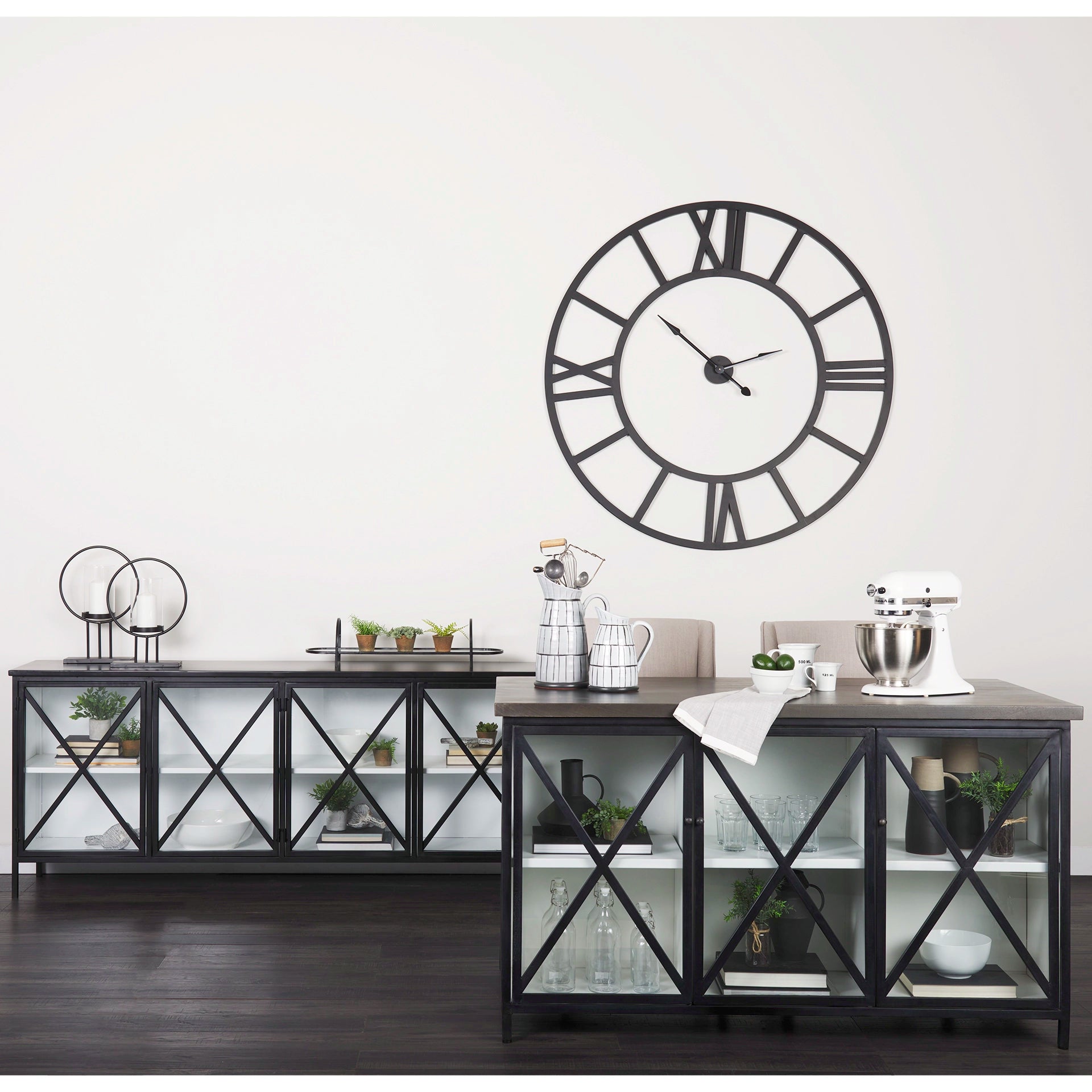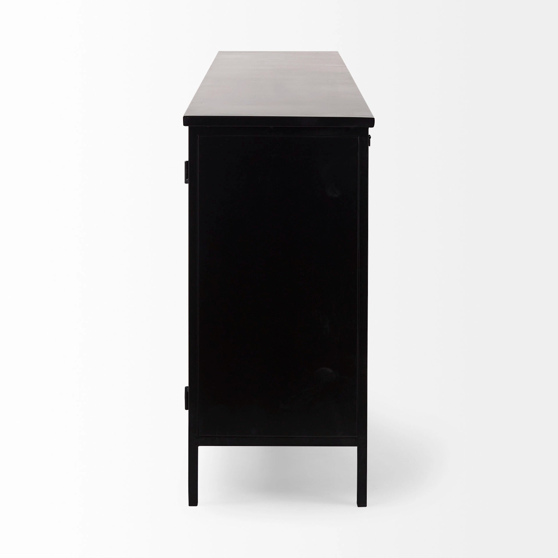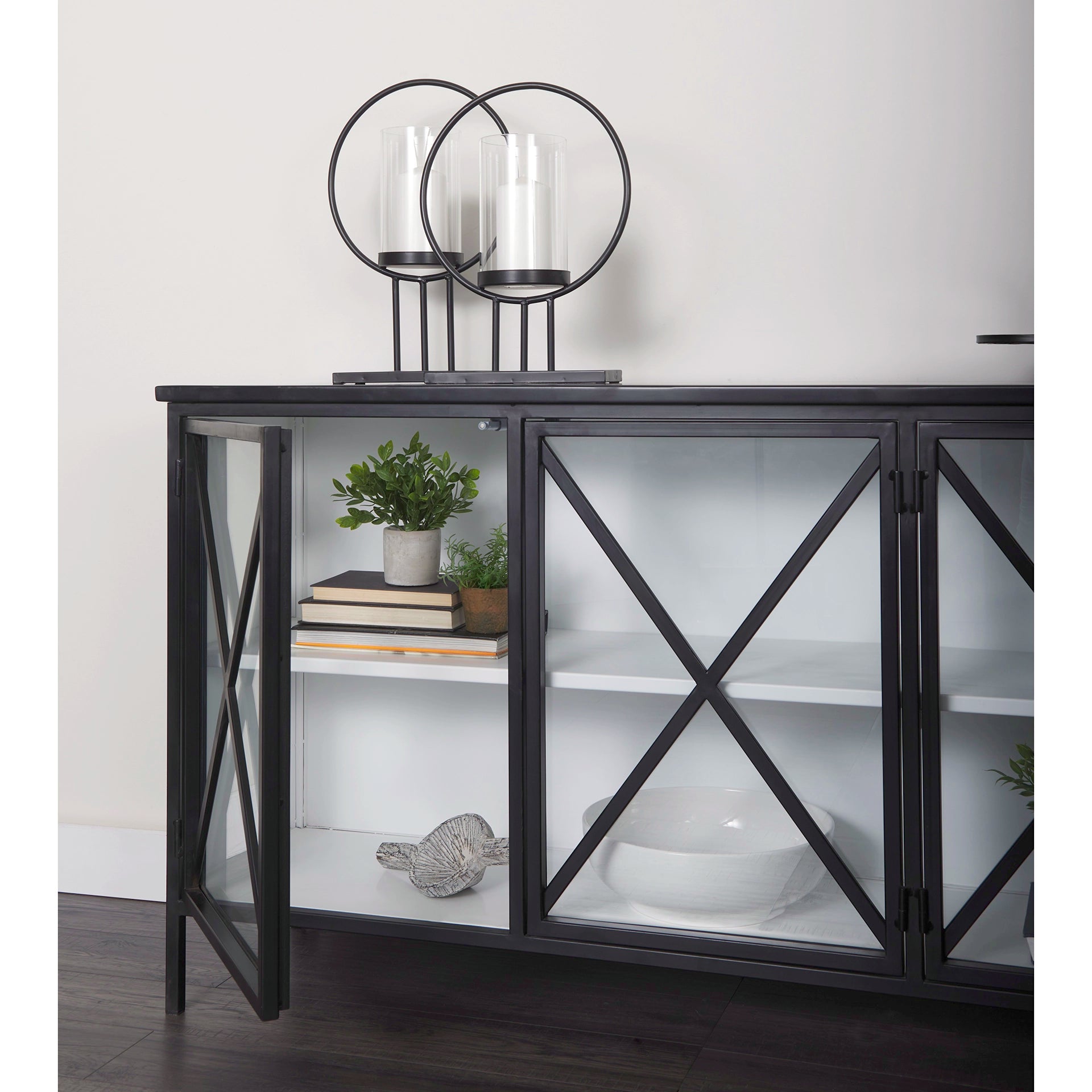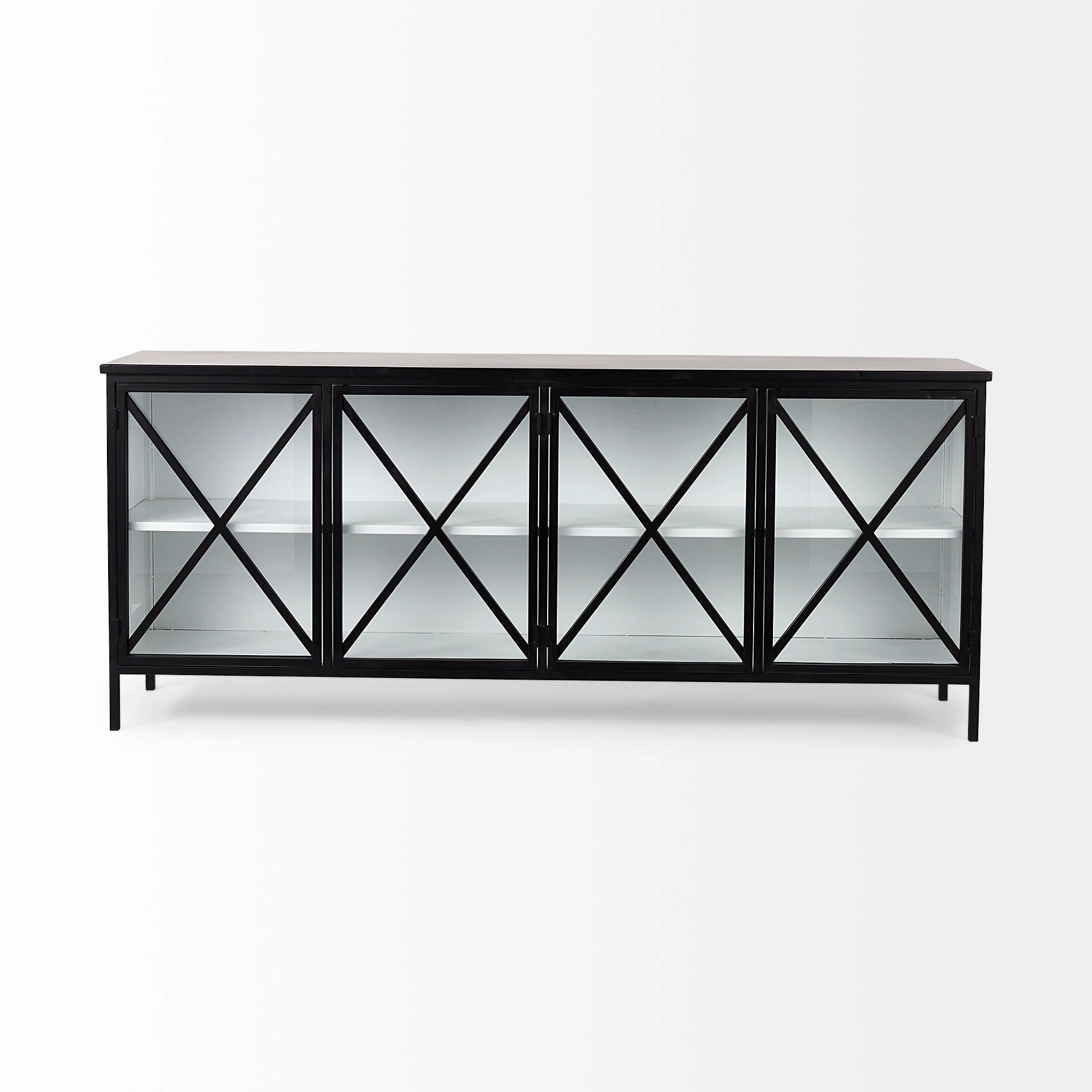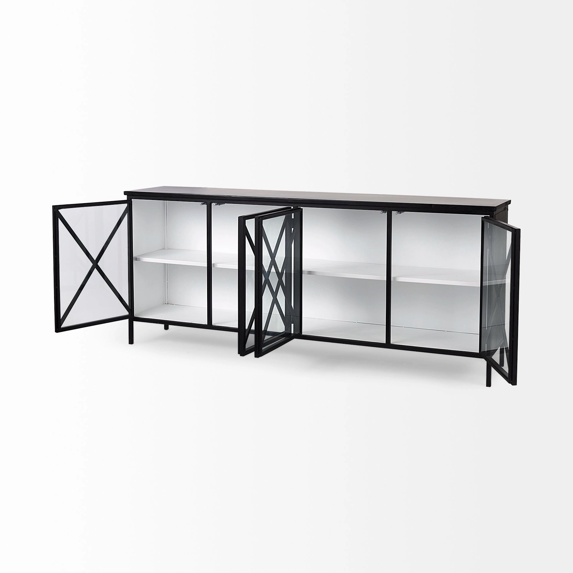 A fresh combination of white and black in a four-door cabinet
