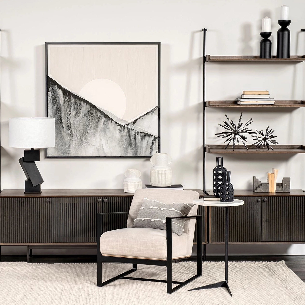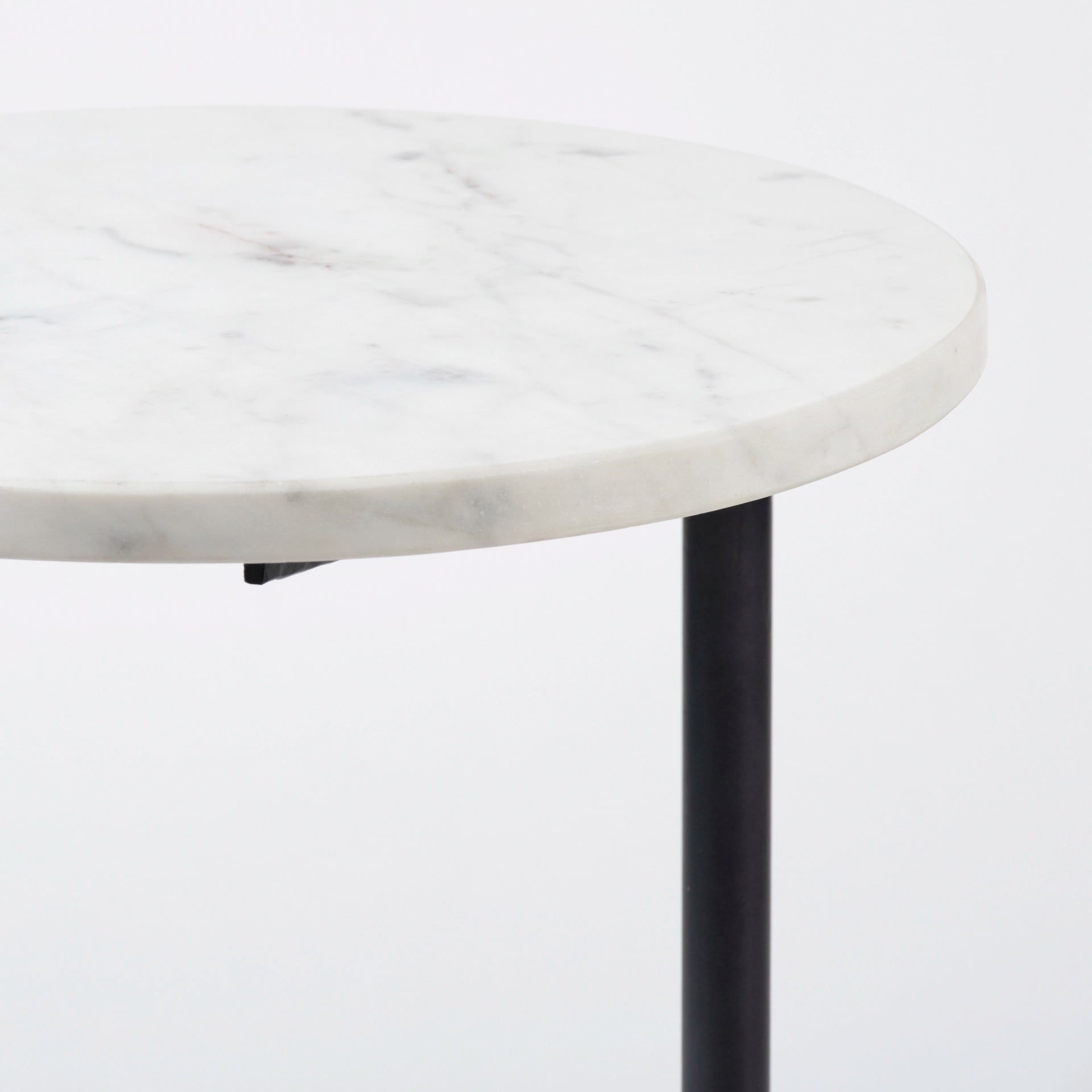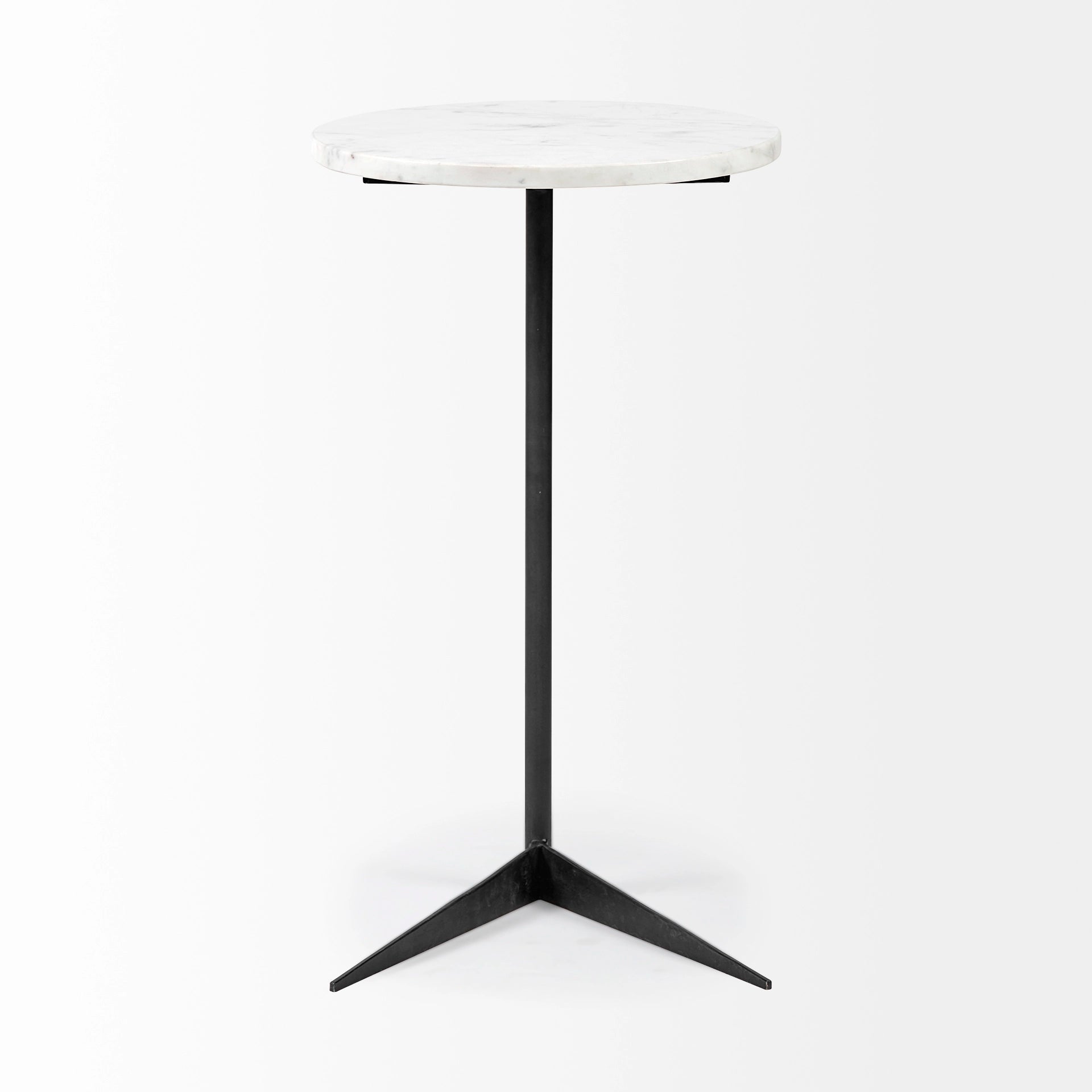 The Ballantine is a ritzy side table featuring an exuberant, round marble top braced by a sleek, solid iron base.