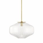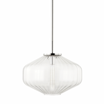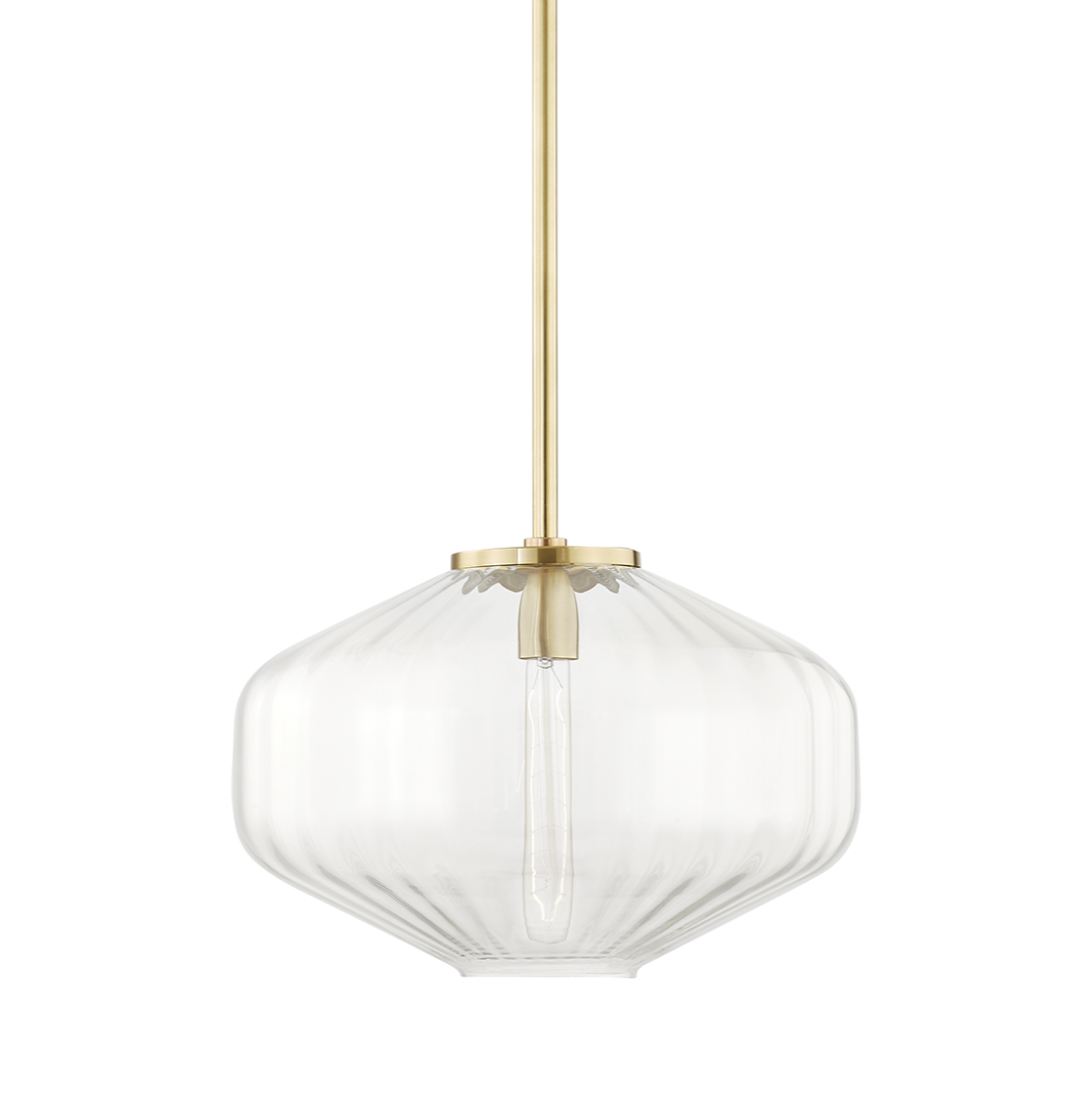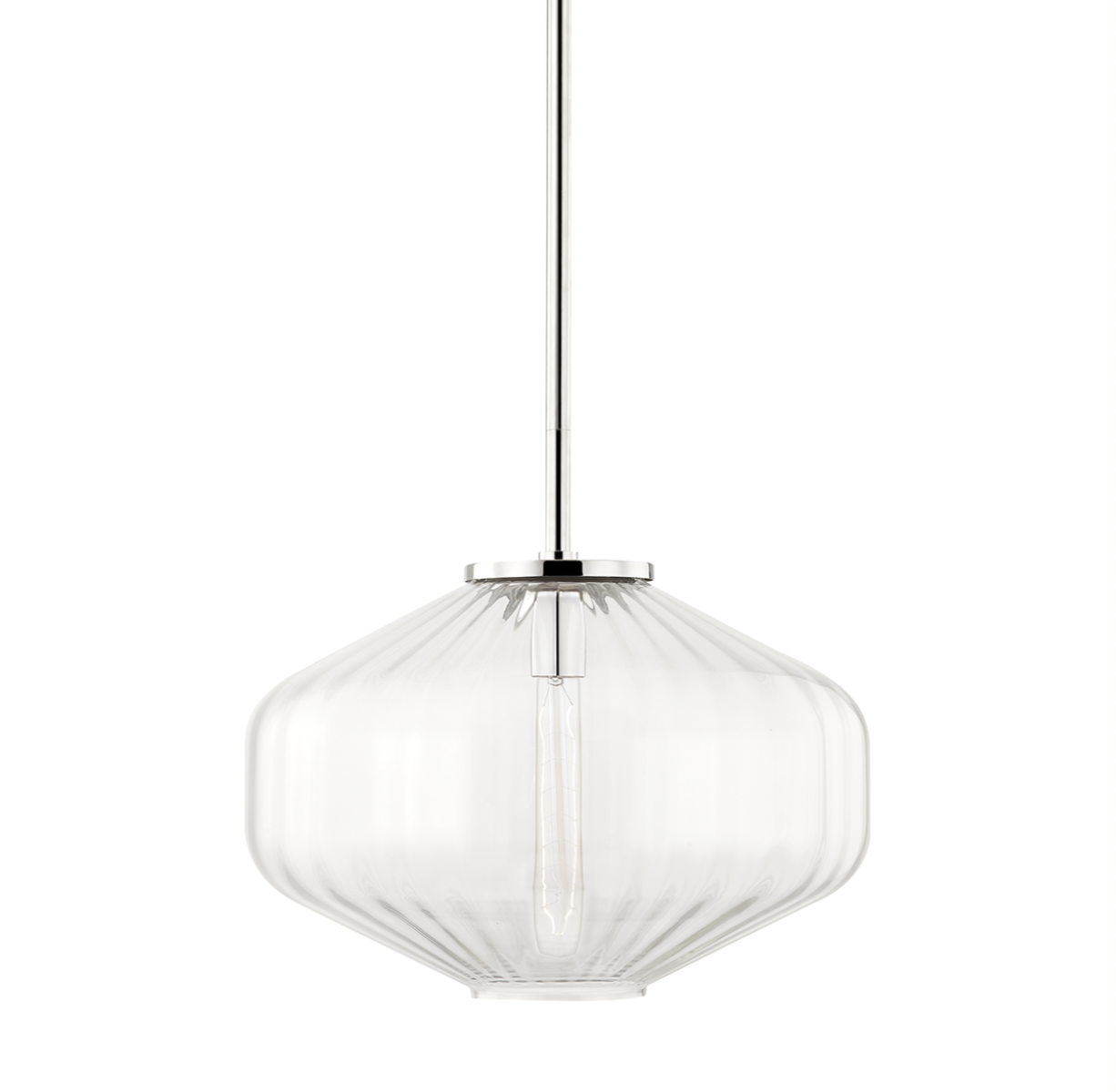 Defined by an octagonal-shaped, ribbed shade, Bennett is glass blowing at its finest. A single carbon filament bulb suspends from a metal bulb base and casts a clear, beautiful glow.