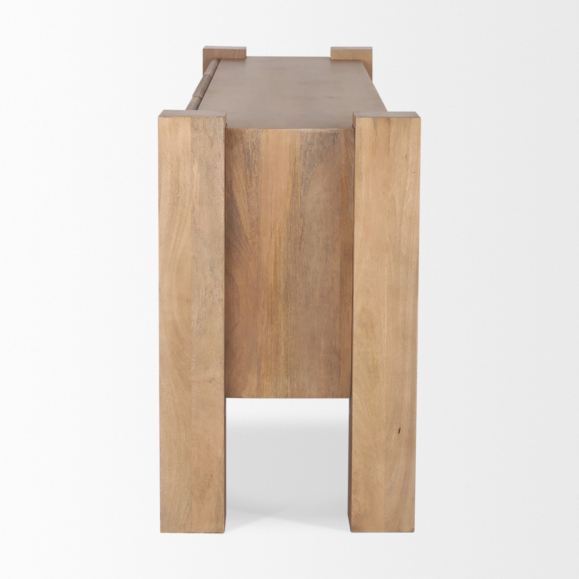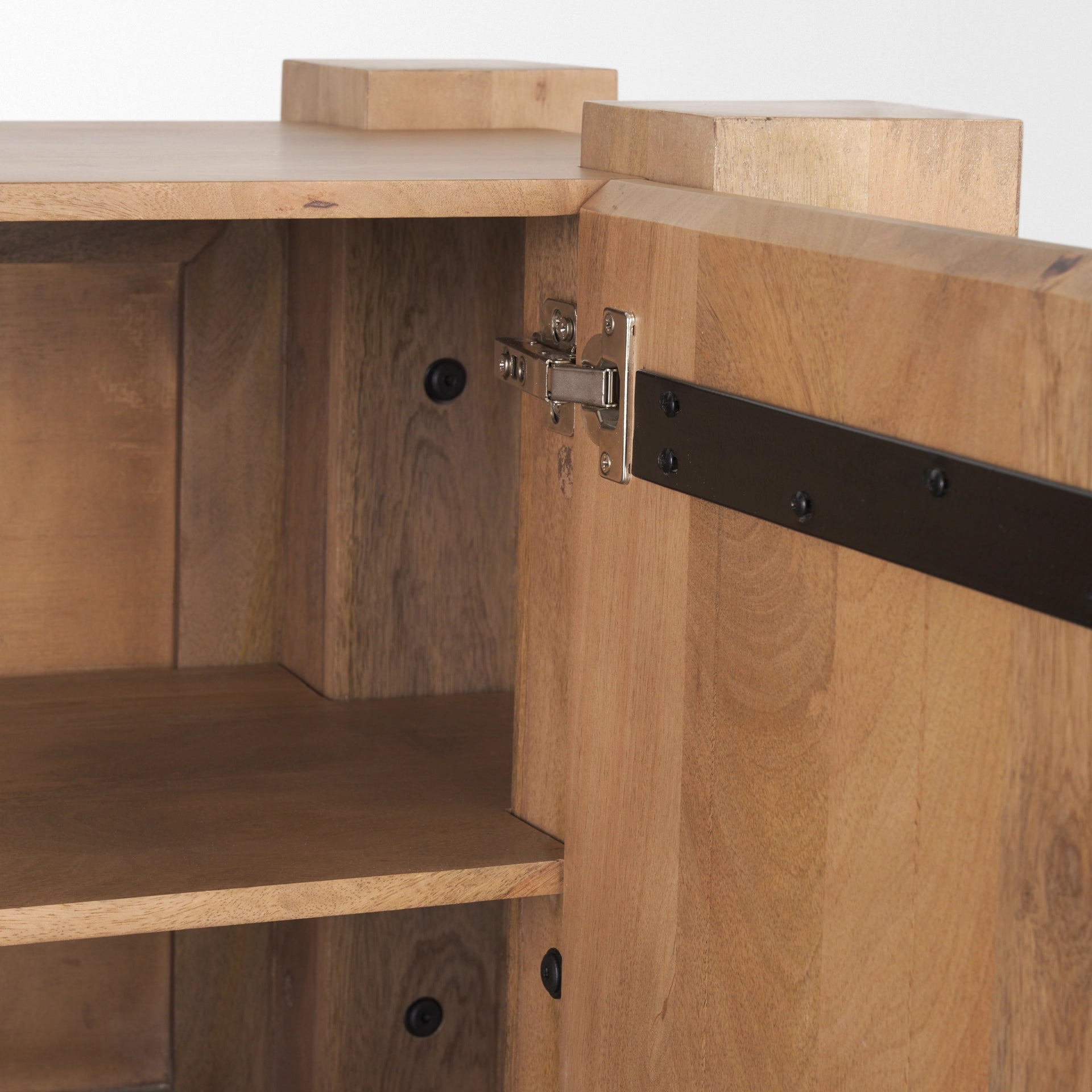 The Beth Sideboard is constructed from mango wood and has three cabinet doors with two shelves.