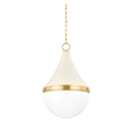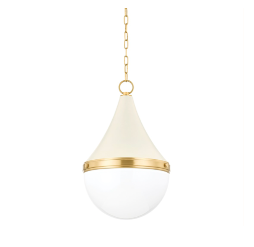 With a slight nod to the nautical, Ciara reimagines a classic design in a way that feels current and modern. A conical metal shade holds an opal glossy glass diffuser creating an overall teardrop silhouette. The beveled Aged Brass band at the center separates the shade and the diffuser while the exposed hardware adds a subtle industrial edge.
