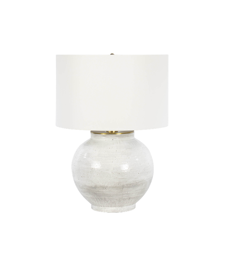The Deacon's simplicity is delightfully charming. A rounded white ceramic base brushed with soft gray touches and finished with a speckled glaze, leaves you with a timeless piece made to last for years to come.