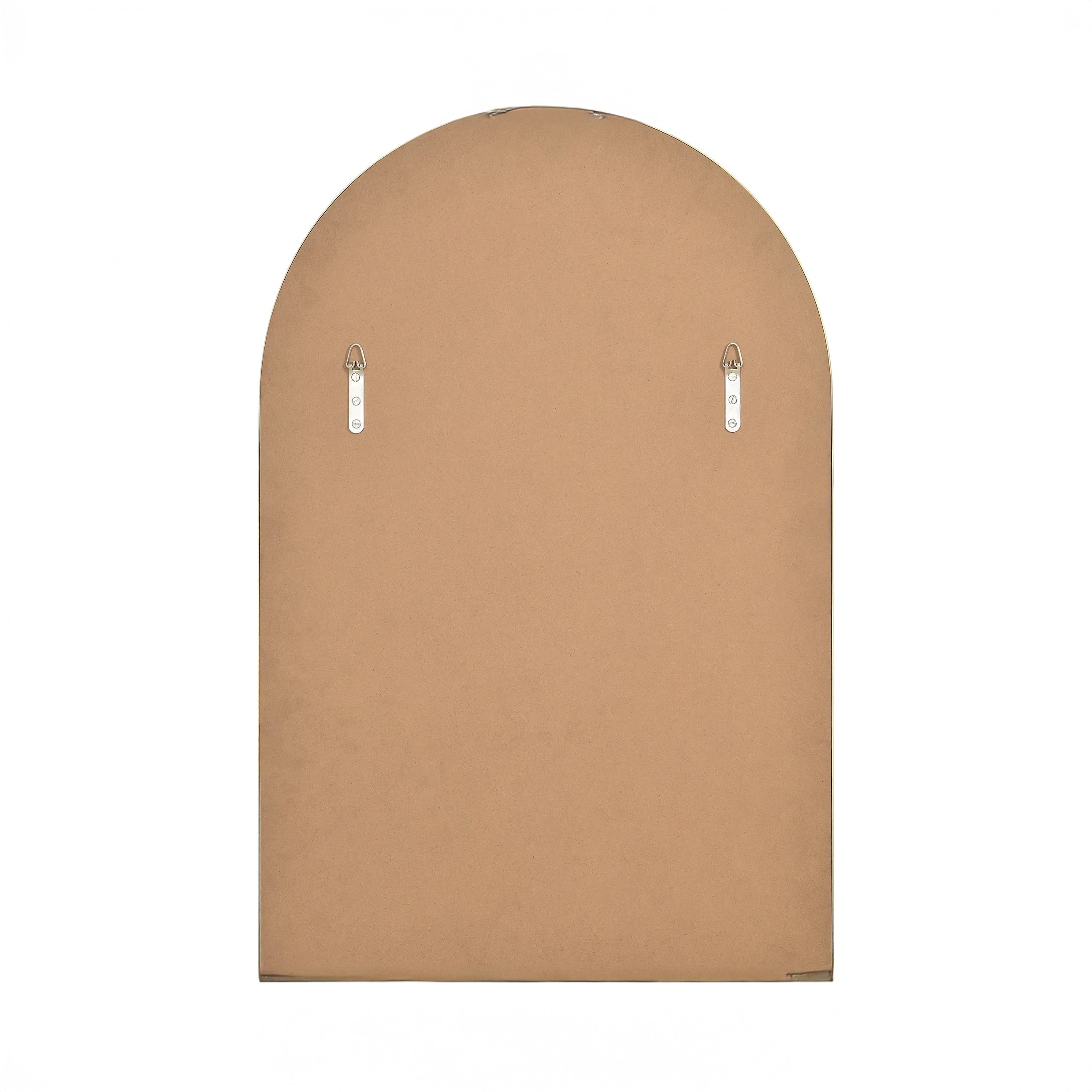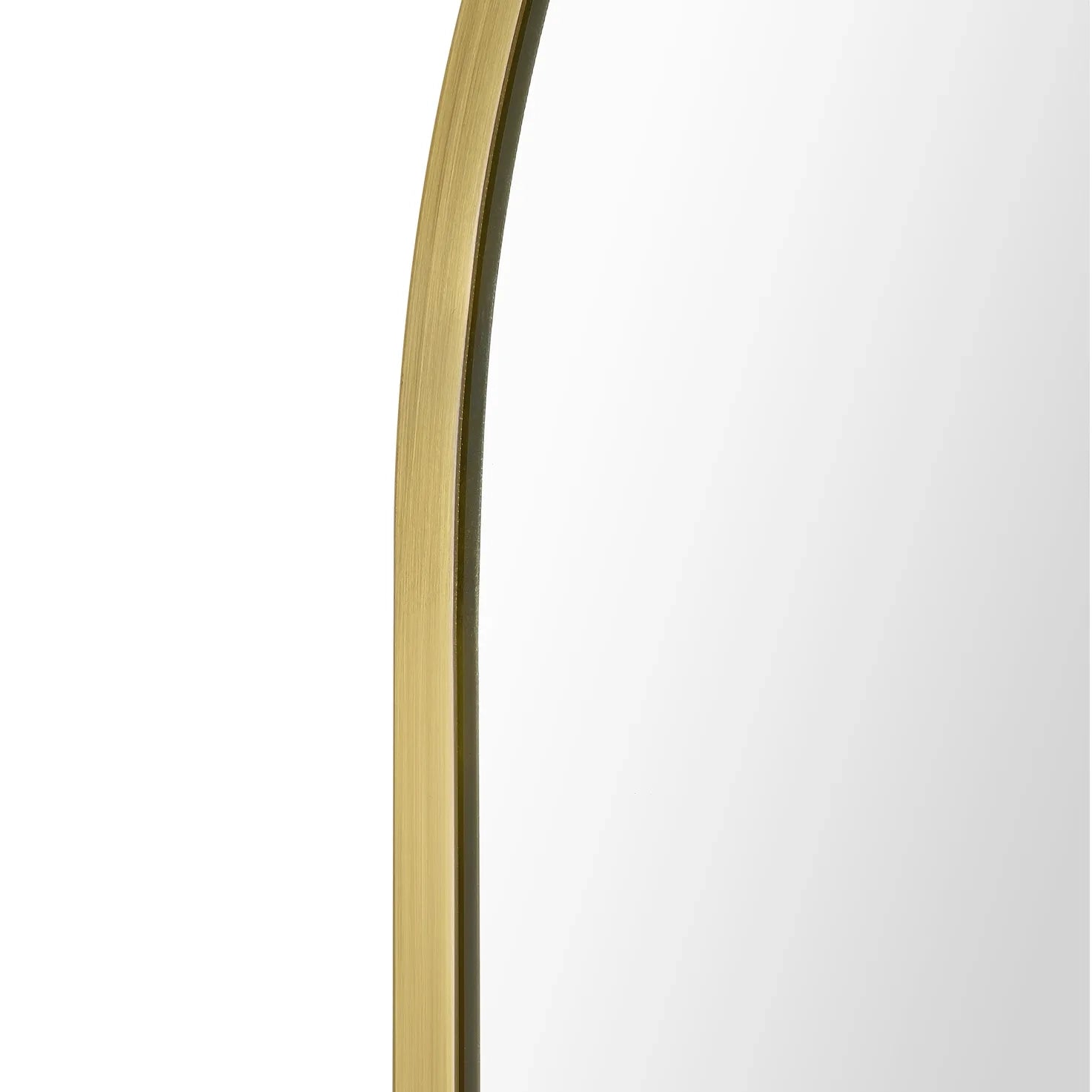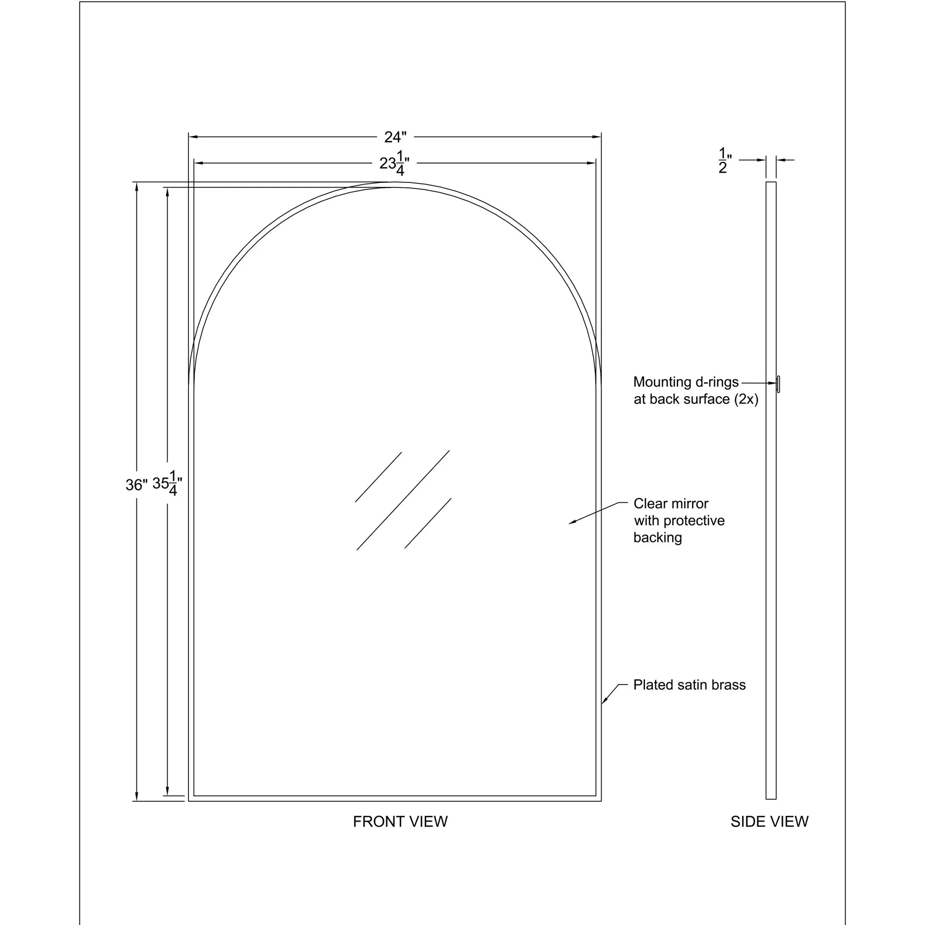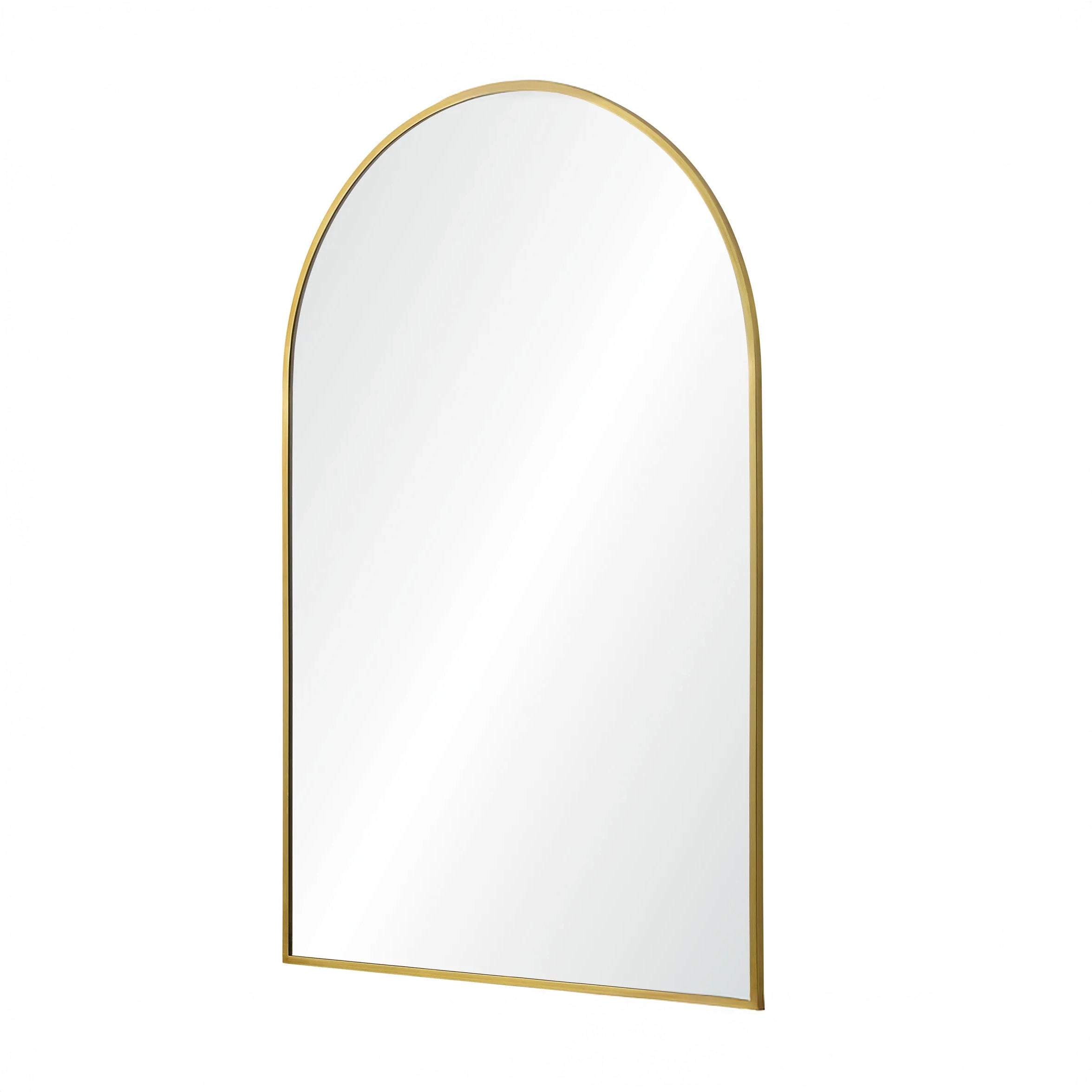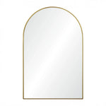 A curving structure adds a formality to the form of this minimal mirror design. With a 24-inch width and 36-inch height, it allows for both hanging and resting above furnishing arrangements. The gleaming satin brass plated iron frame provides a dazzling detail and creates compatibility with contemporary, classic and mid-century modern interiors.