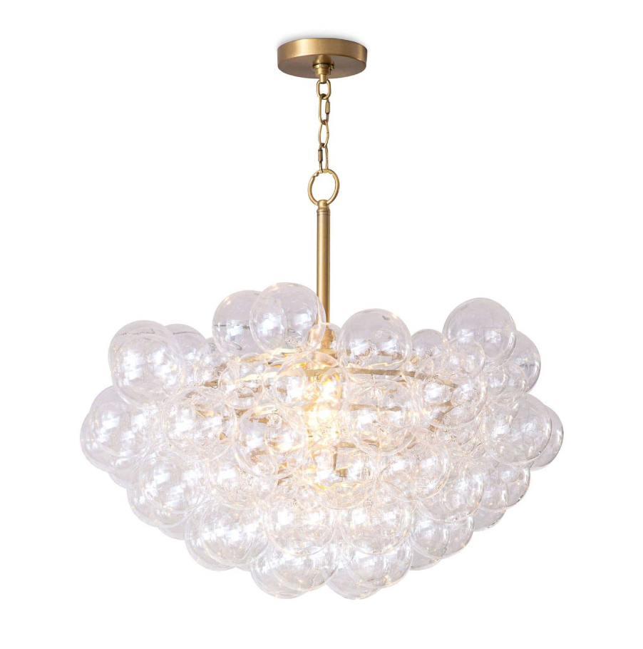 Light and airy, the Bubbles chandelier radiates light through a cluster of hand-blown glass globes. The tiered metal frame lends a whimsical modern touch to a kitchen, entryway, or foyer.