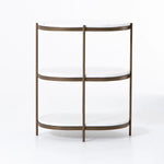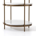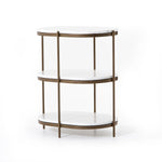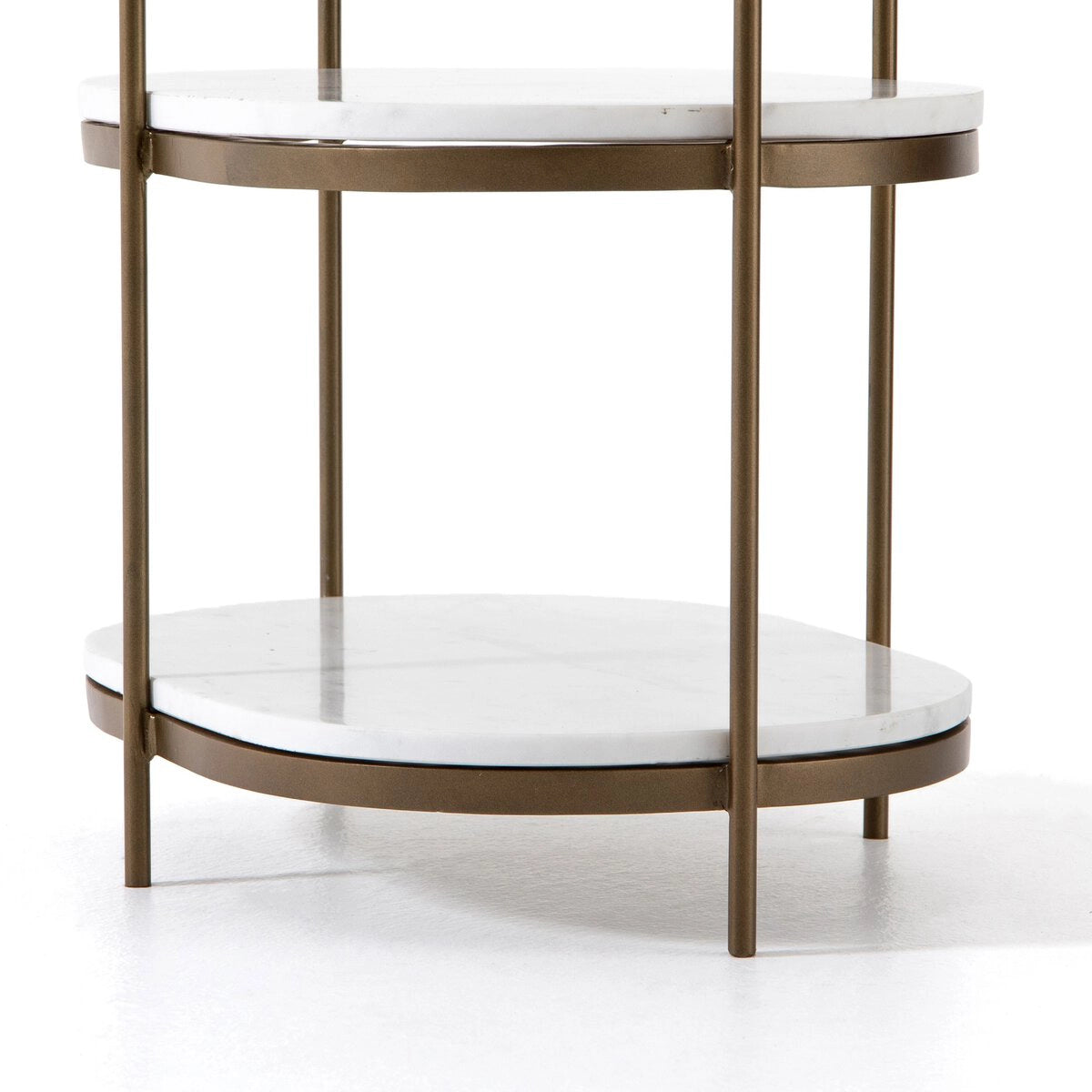 Add a pop of sophistication to any space. Polished white marble lays three tiers of oval-shaped shelving, with brass-finished iron framing bringing a feminine feel to bedside storage.