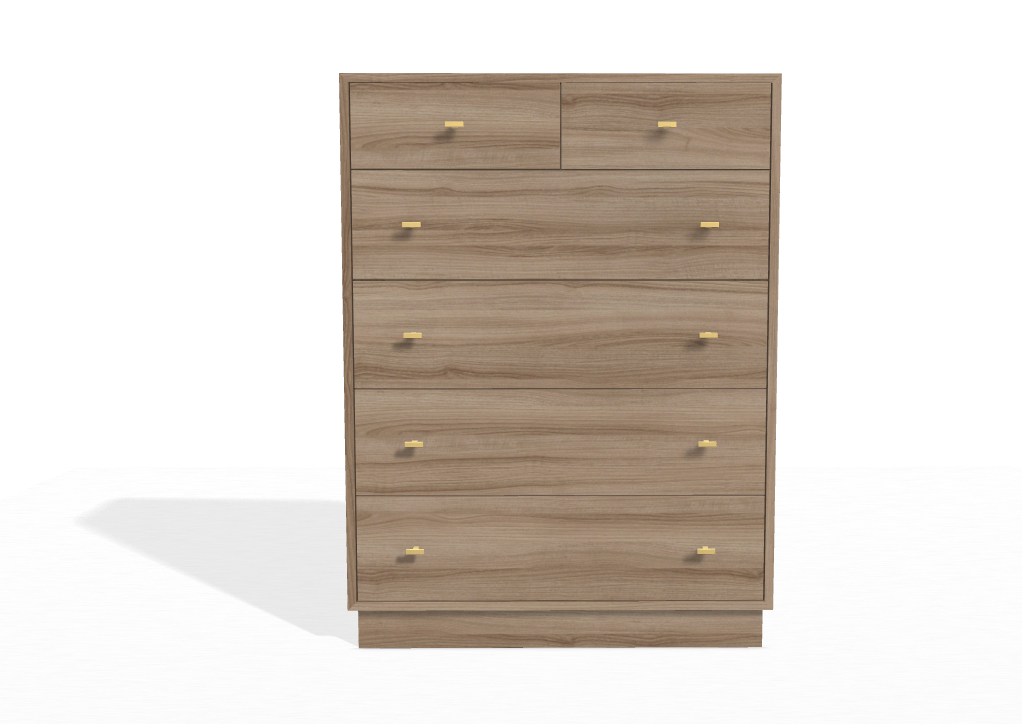 A modern and elegant chest of drawers, made with solid maple and select veneers. Five dovetailed drawer boxes and concealed metal slides.