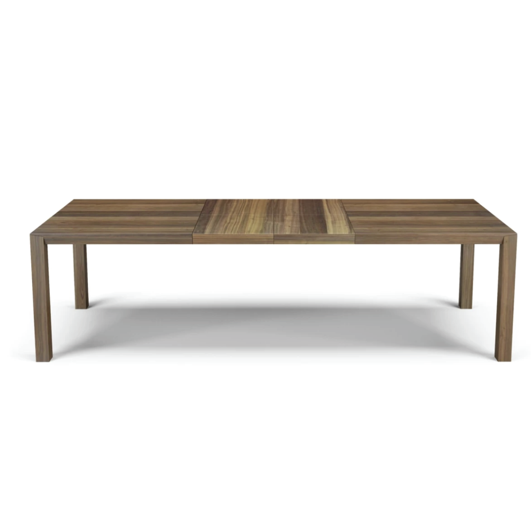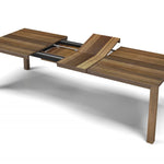 This modern beauty is made of American black walnut and can be equipped with 1 or 2-18 inch butterfly extensions that extensions that retract under the table's centre thanks to a built in Italian mechanism.