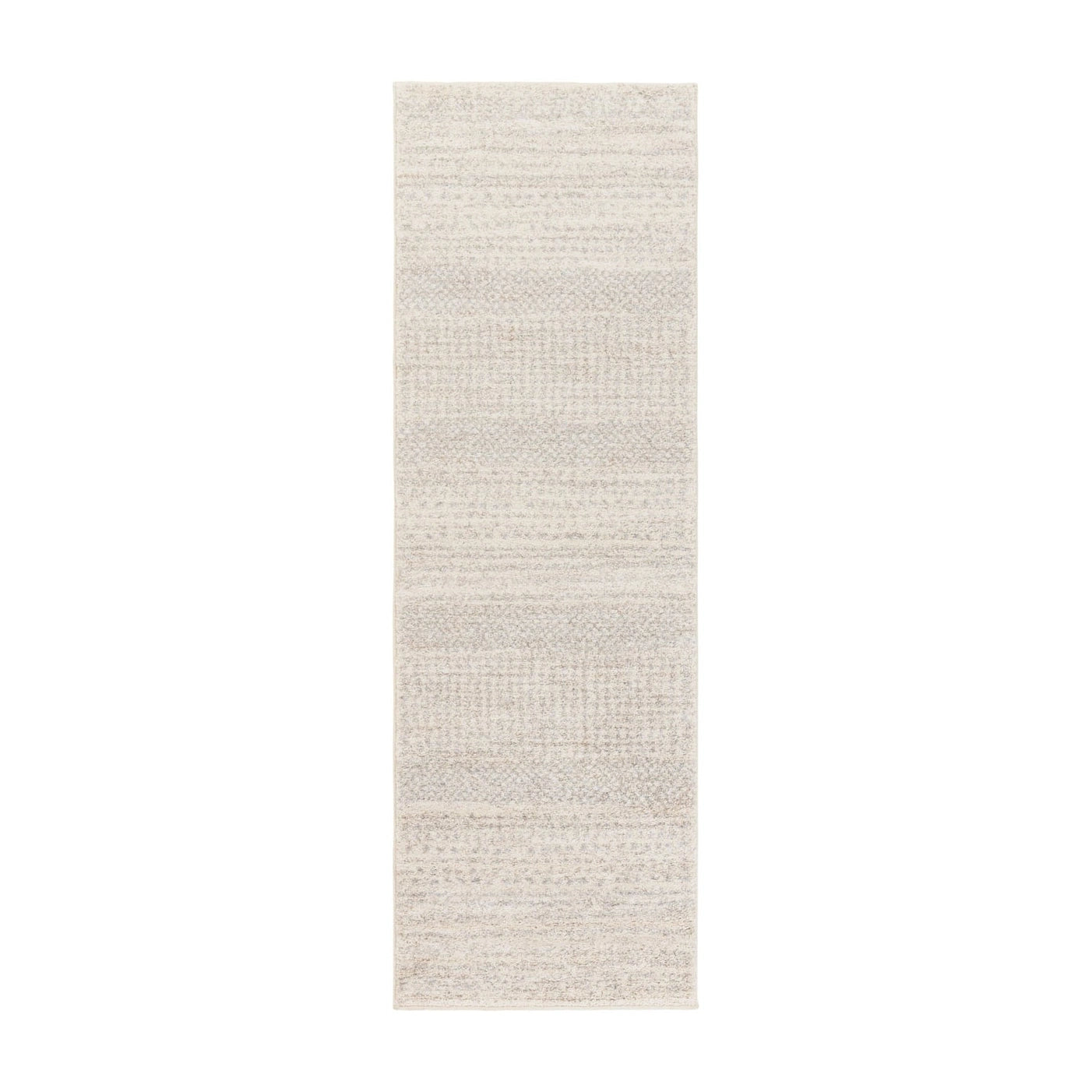 Machine woven of 100% polypropylene in light grey, camel and ivory. Great for high traffic areas.