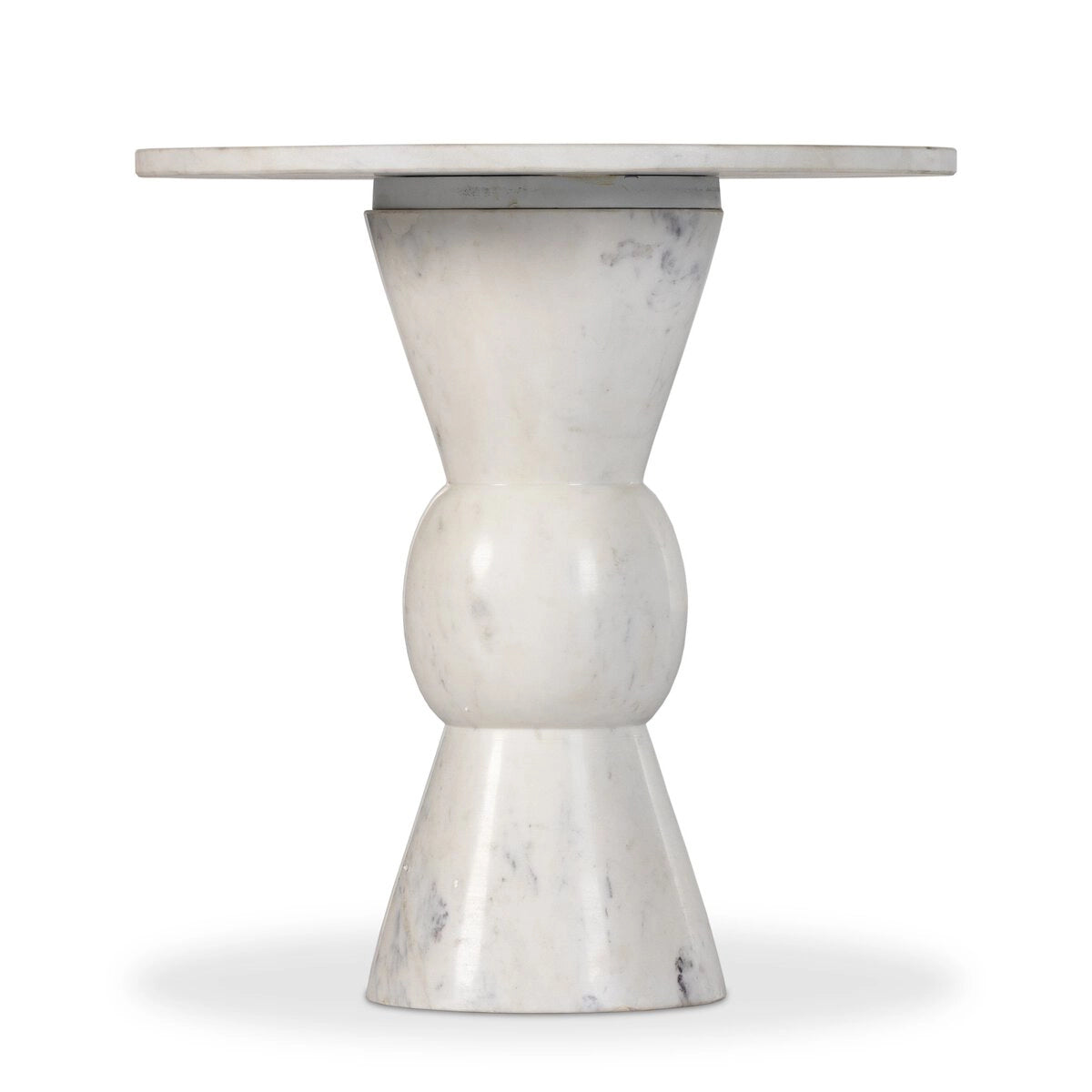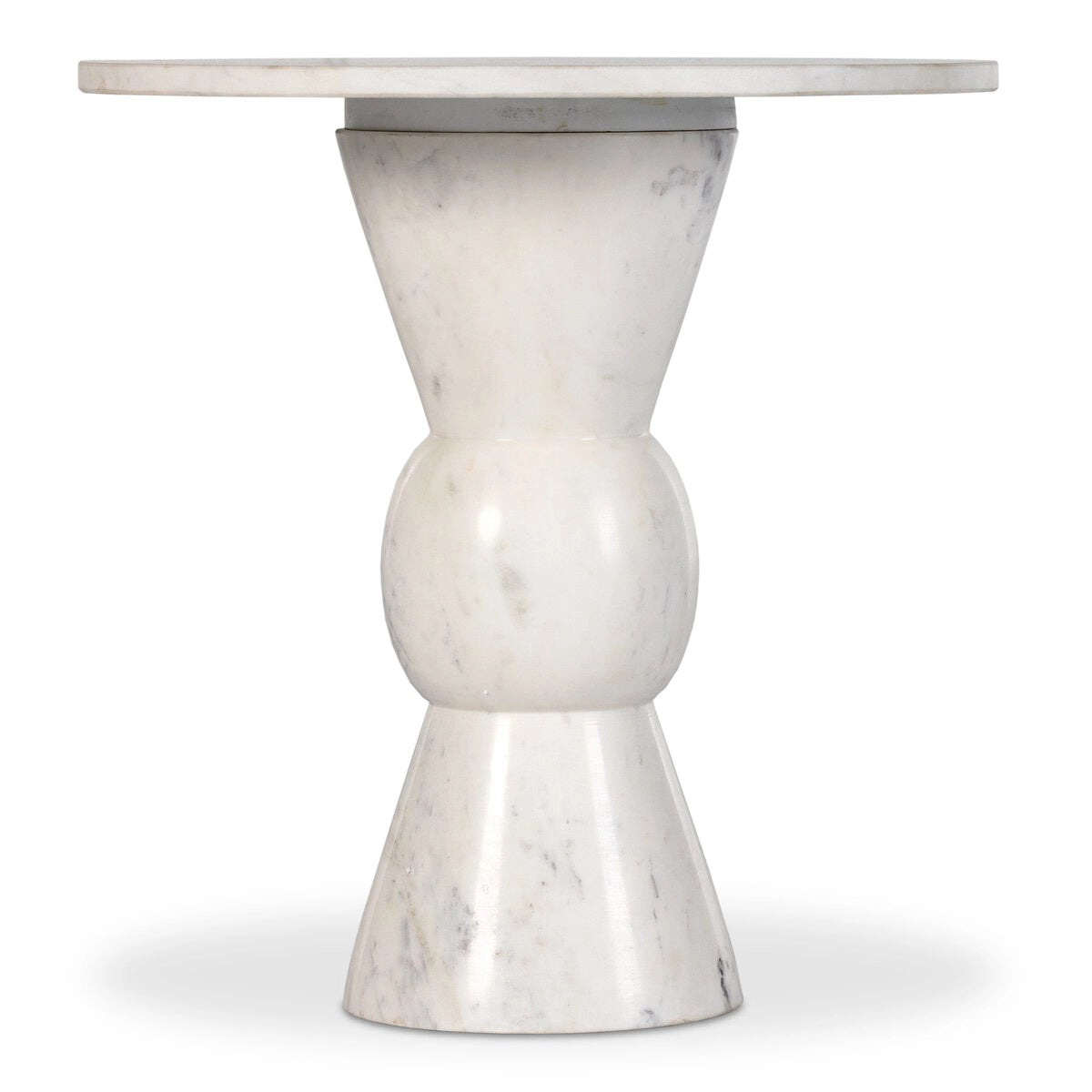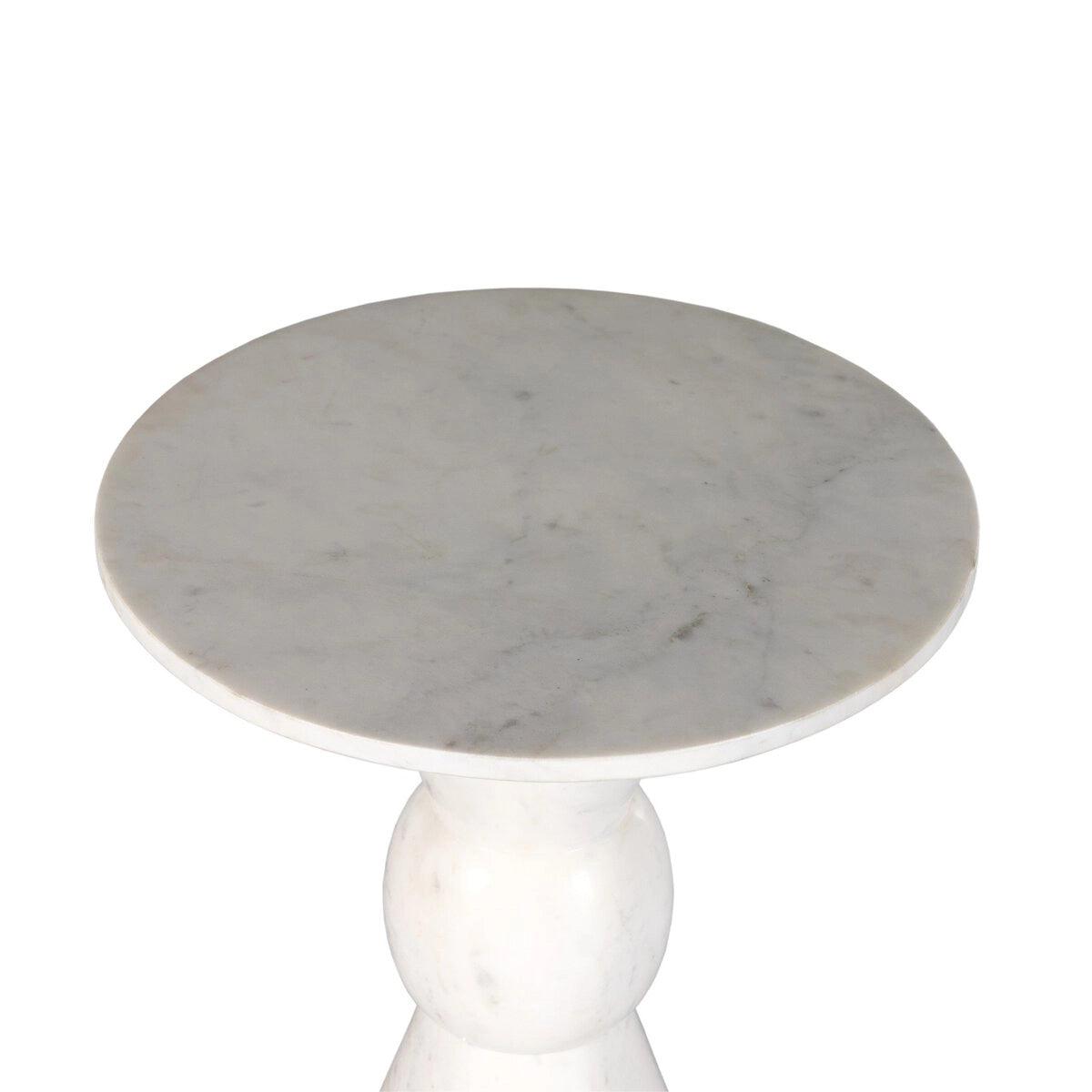 Solid white marble is turned and polished, shaping an elegant silhouette. Versatile in size to be styled just about anywhere.