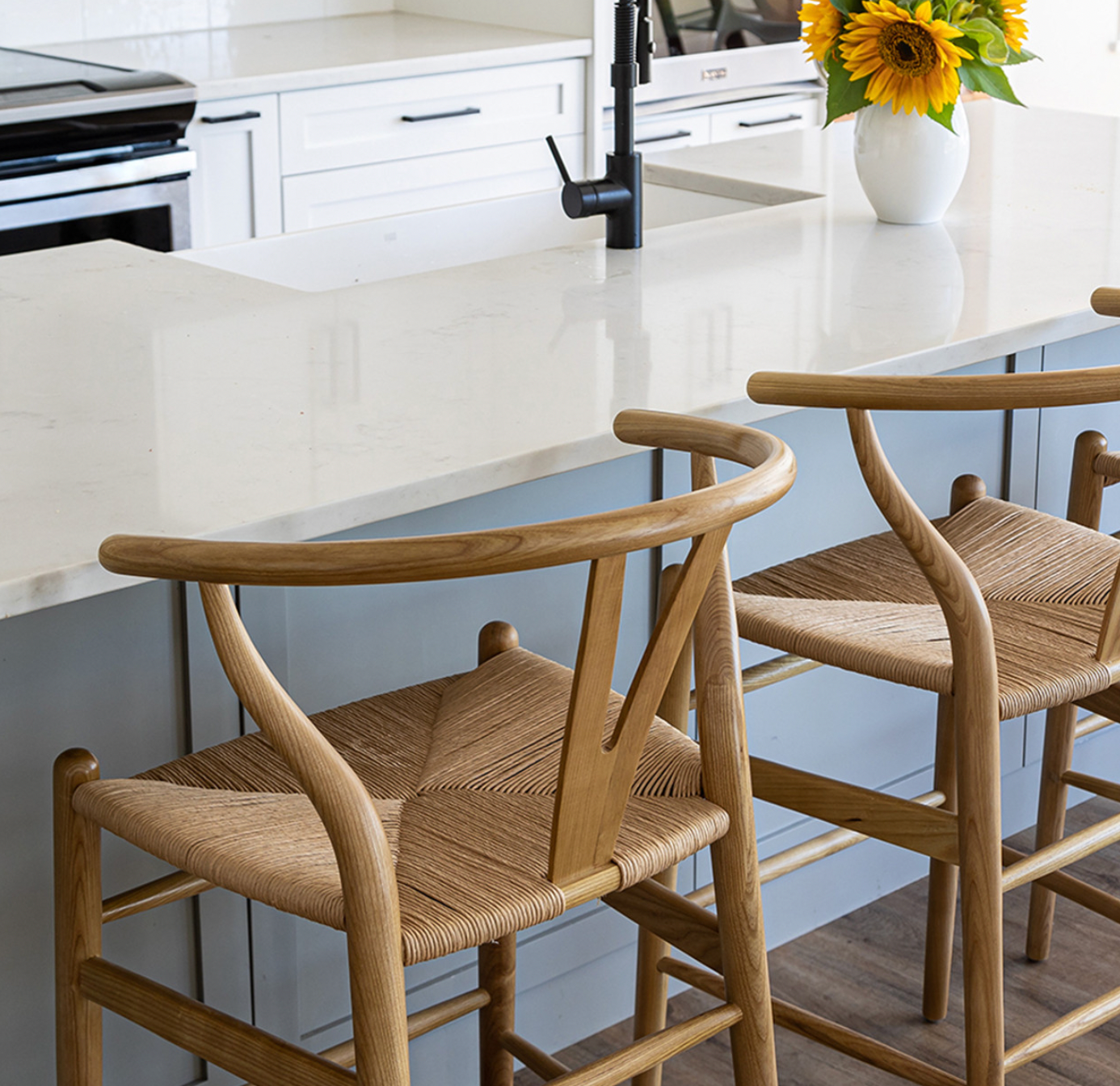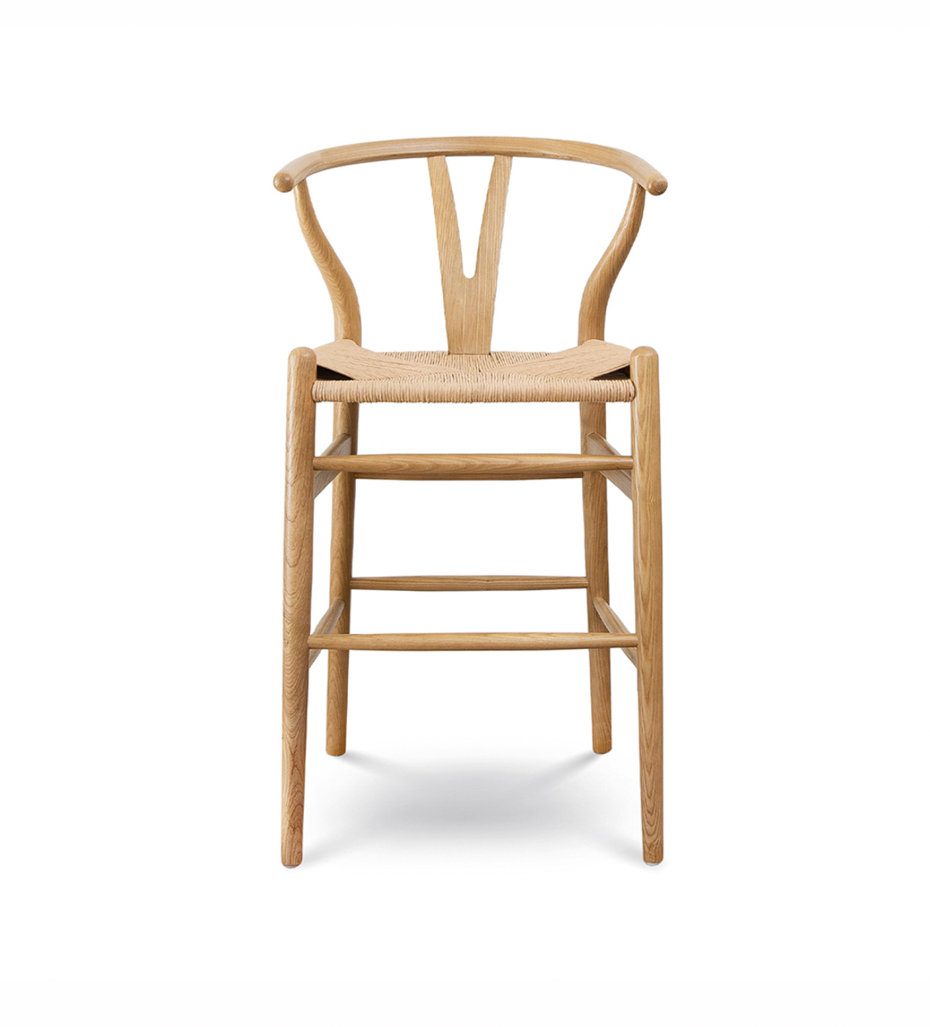 This piece is the epitome of natural simplicity. Inspired by the mid-mod 1950s Hans J Wegner wishbone chairs, these counter stools offer a minimalist aesthetic and airy feel. The Y-back design creates an organic vibe that will help this piece fit seamlessly into any space. The curving top rail and tapered legs are stunning details that elevate this piece to the next level. The natural paper rope seat is woven into perfect comfort, so you can sit back and relax in style.