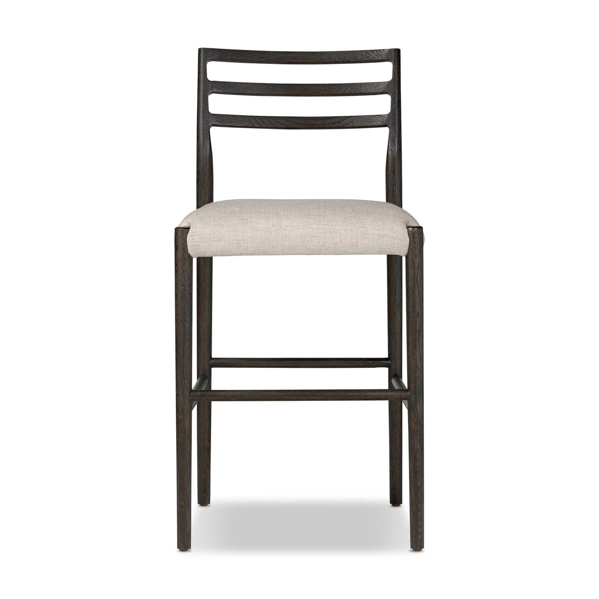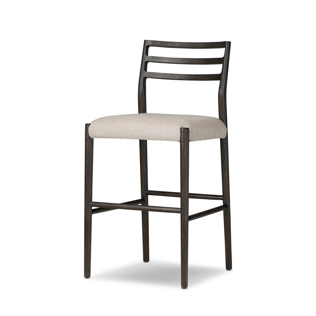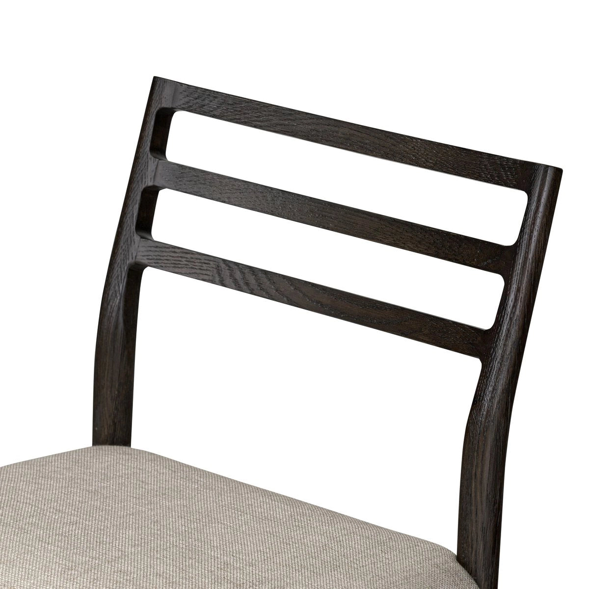 The classic ladderback chair, reimagined. Carbon-finished oak frames a squared cotton- and linen-blend seat, bringing comfort and style to the modern bar.