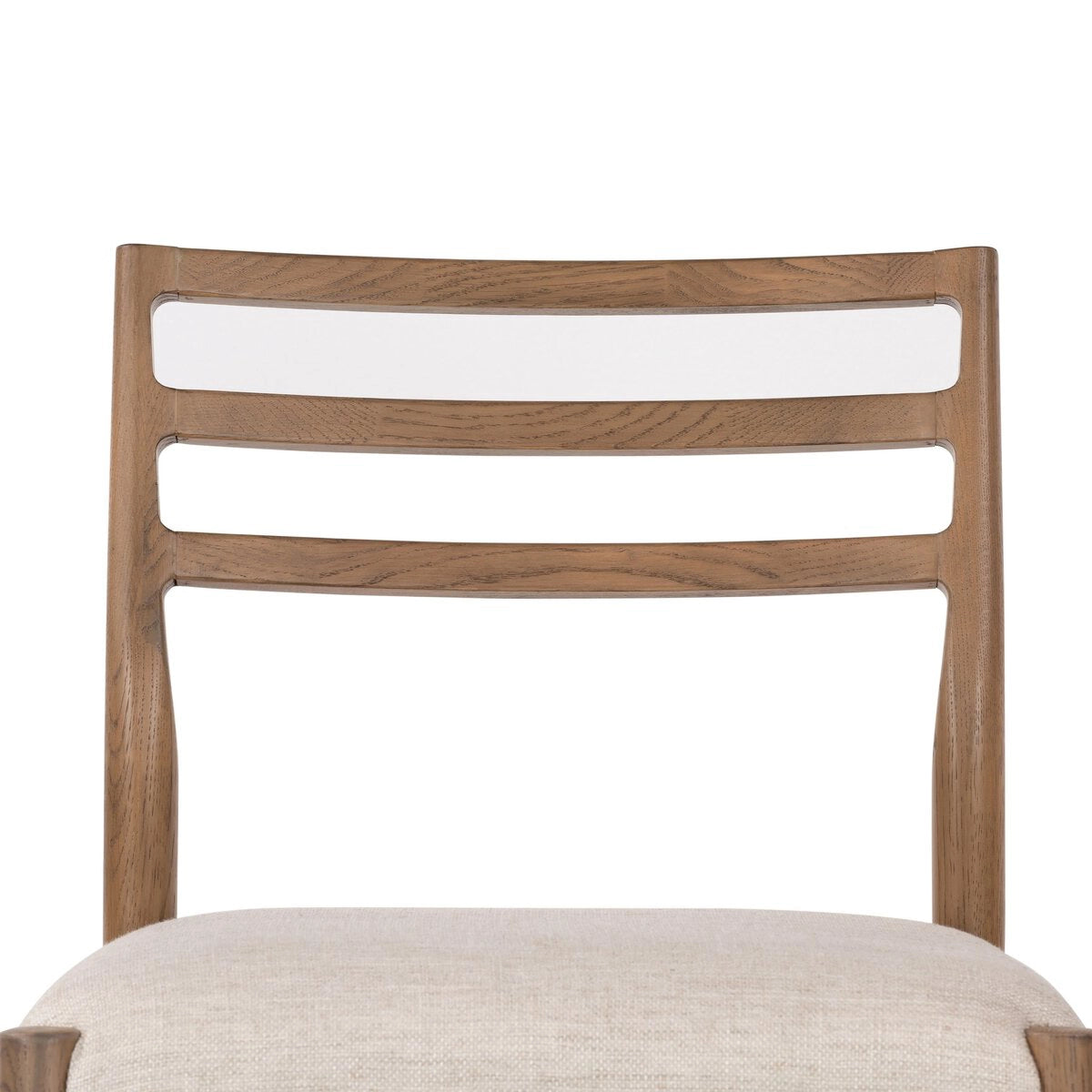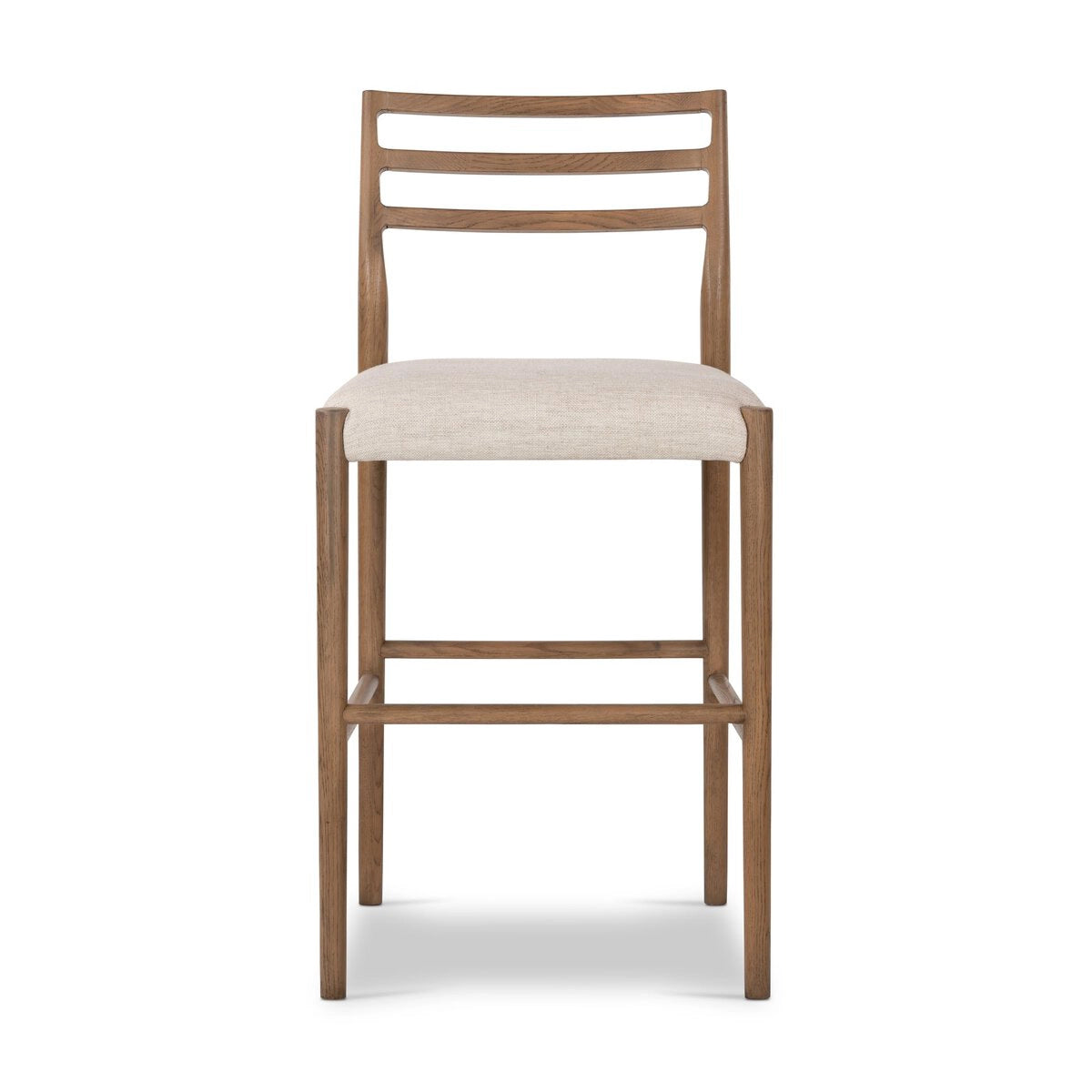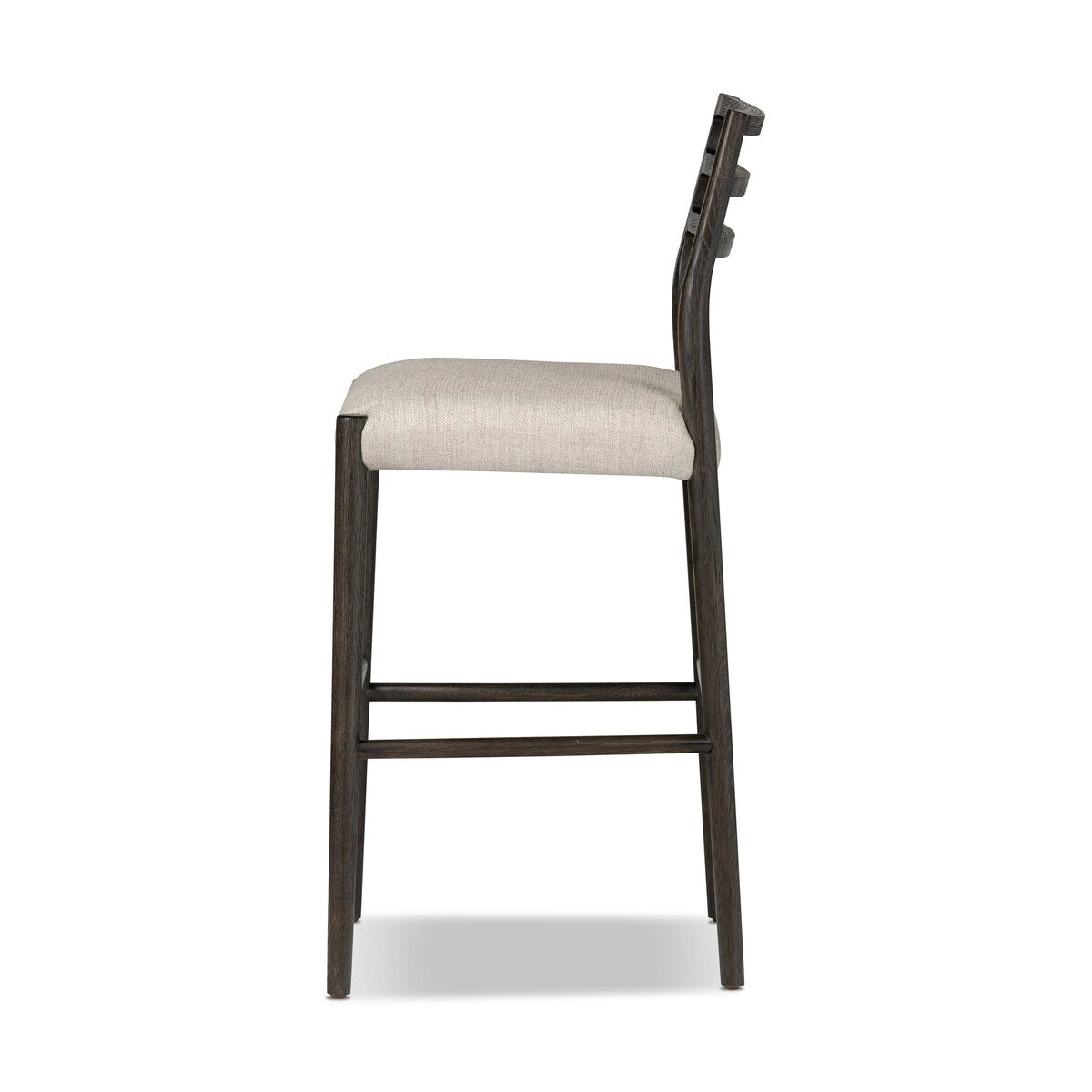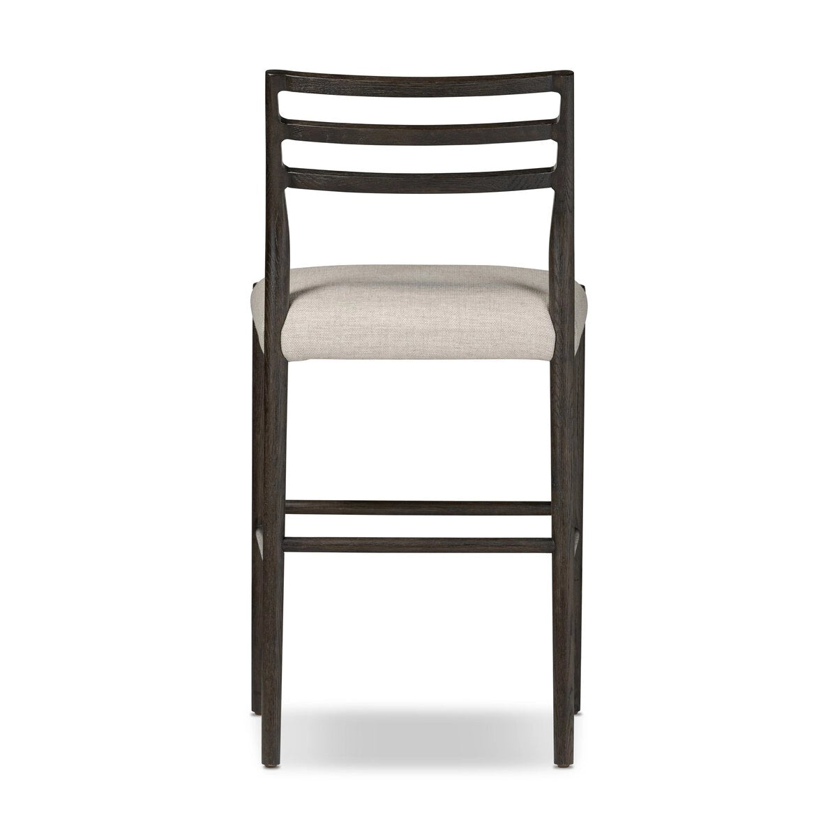 The classic ladderback chair, reimagined. Carbon-finished oak frames a squared cotton- and linen-blend seat, bringing comfort and style to the modern bar.