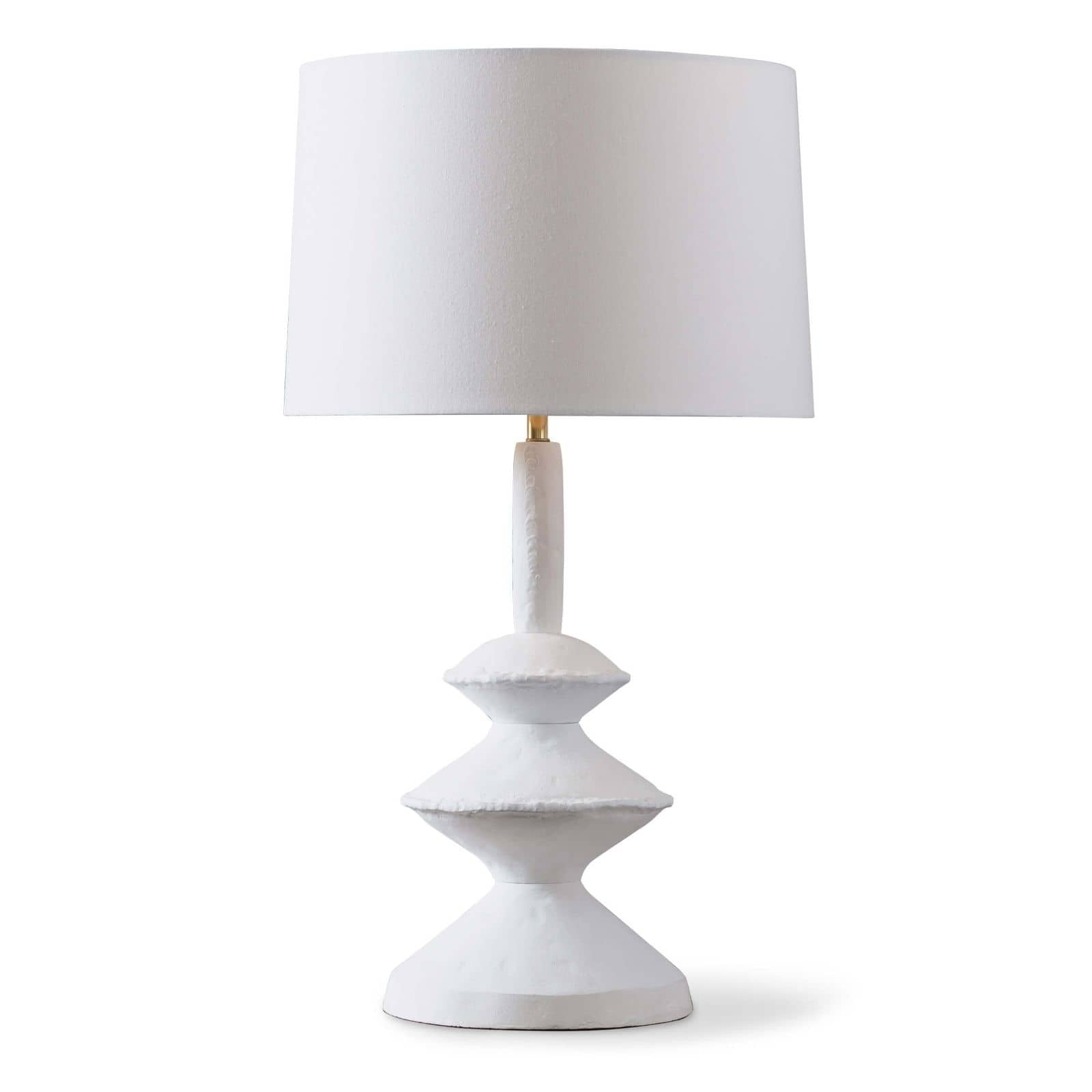 Inspired by a paper maché sculpture, this versatile lamp is at home in a variety of spaces. Complex curves, paired with a matte white finish gives this table lamp a unique appearance. Slight imperfections were left in, adding beauty and originality.