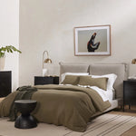 Bring a billowy look to the bedroom. Oversized pillow-like cushioning creates the headboard for this low-profile bed, for a grand-but-cozy look.