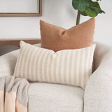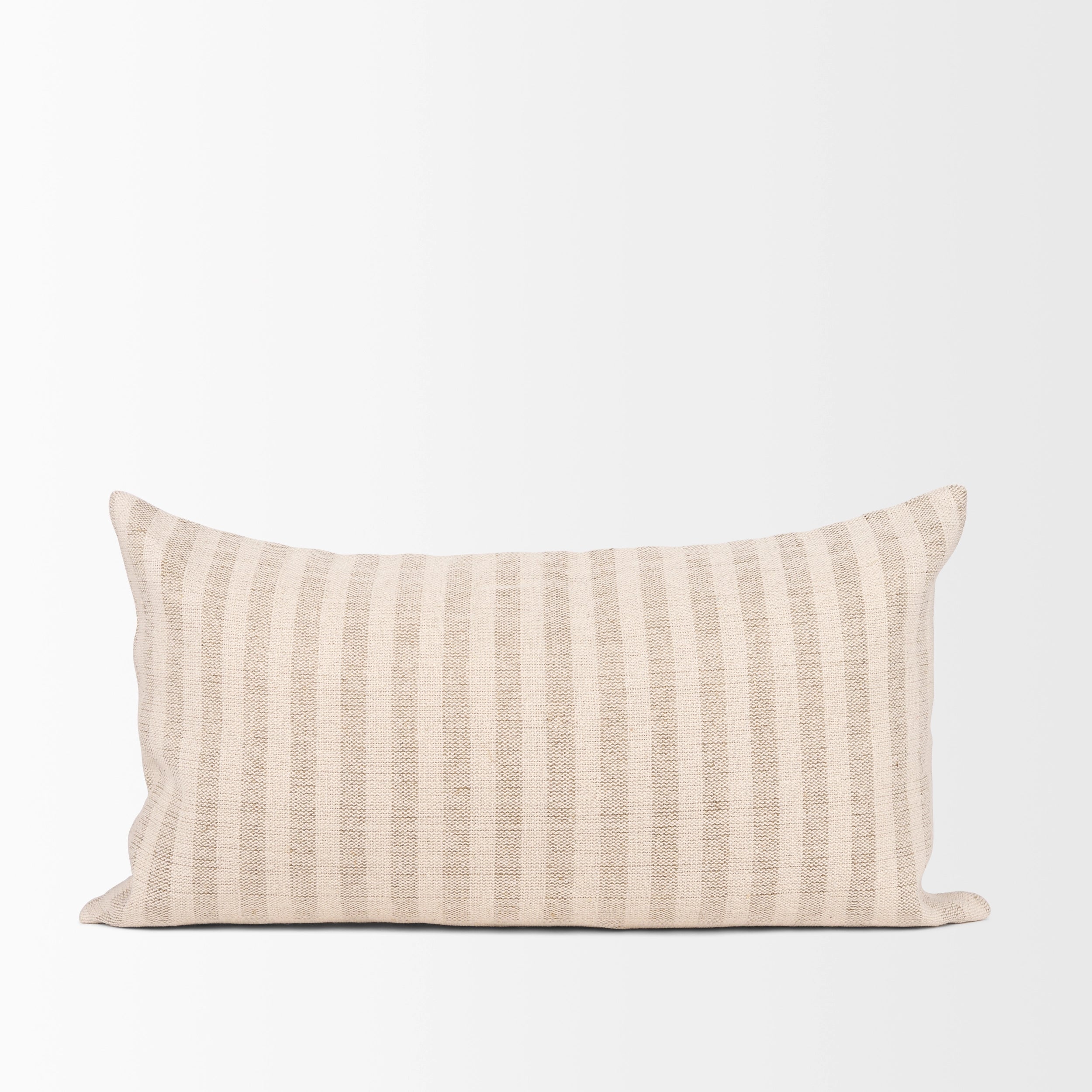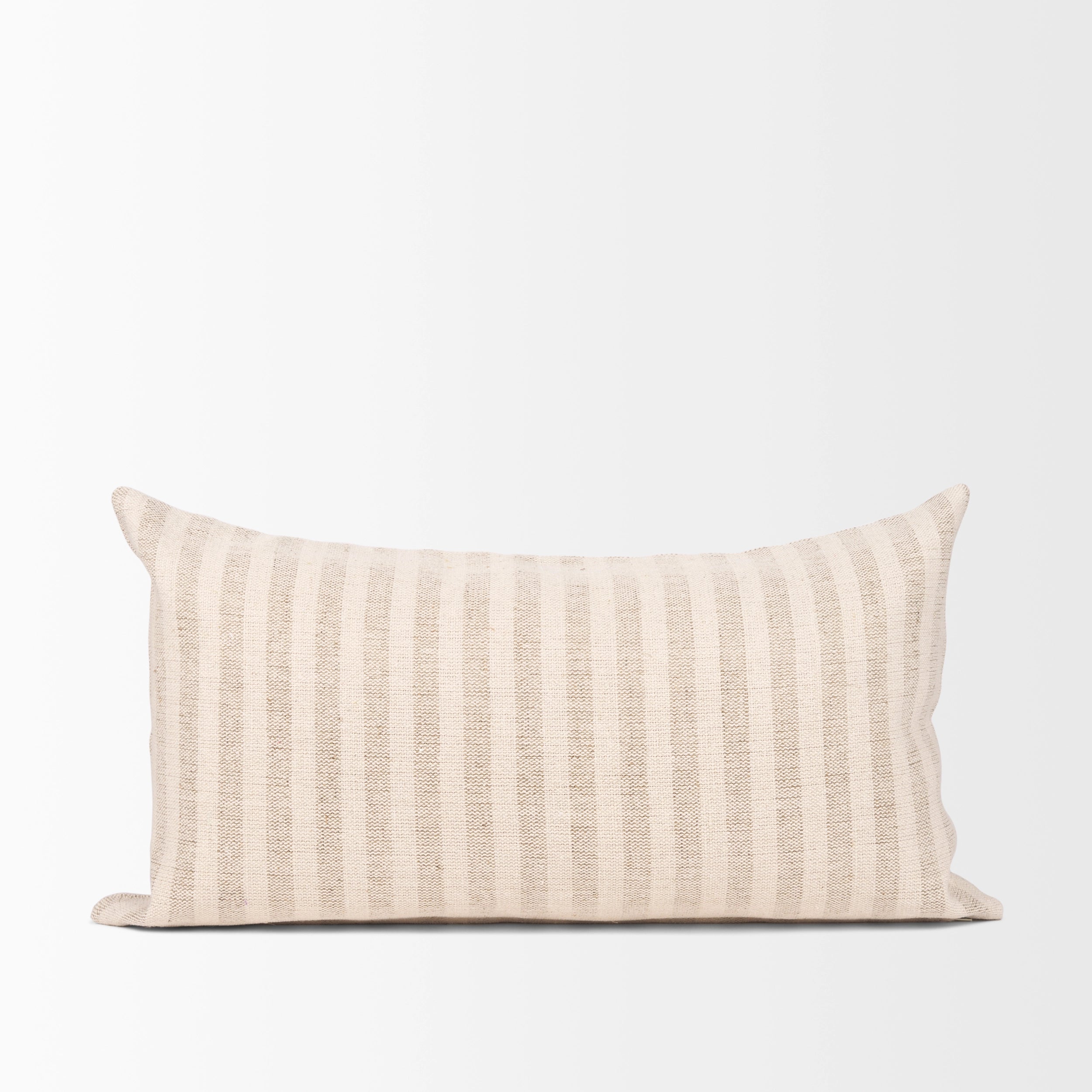 This lumbar Jace Pillow Cover is doubled-sided cream and beige striped linen-cotton blend. Includes feather pillow insert.