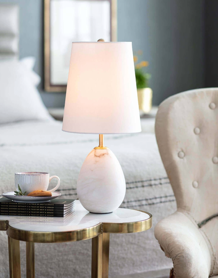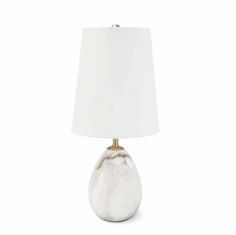 Jared Mini Lamp transcends trends with its classic yet modern style. An oval alabaster base is beautifully veined for a sophisticated, organic look, and its elongated shade adds depth to its silhouette. Place on a buffet or a sideboard for extra illumination.