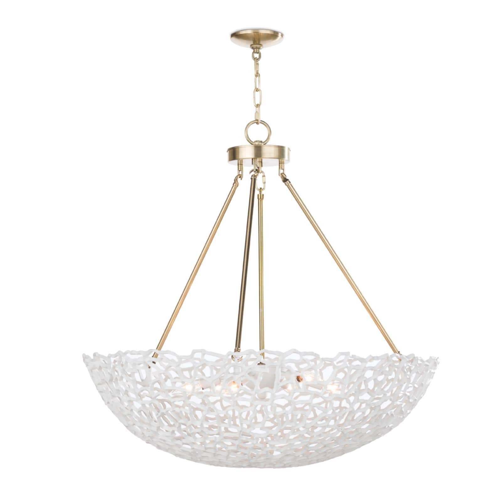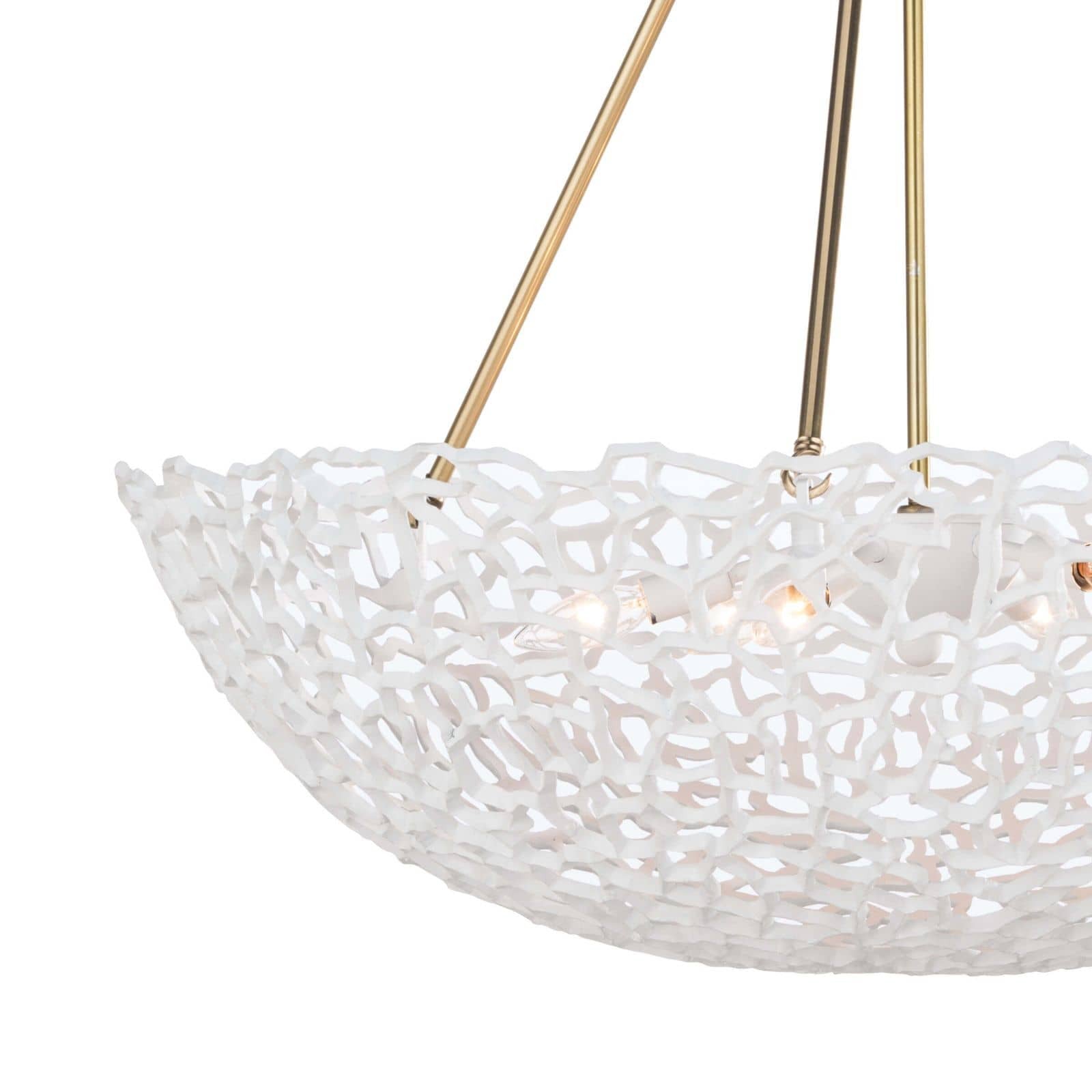 Casually elegant, Jett features an intricate bowl shade that throws dazzling patterns onto nearby surfaces. White and gold make a modern statement, and the artistic look would make a great living room focal point.