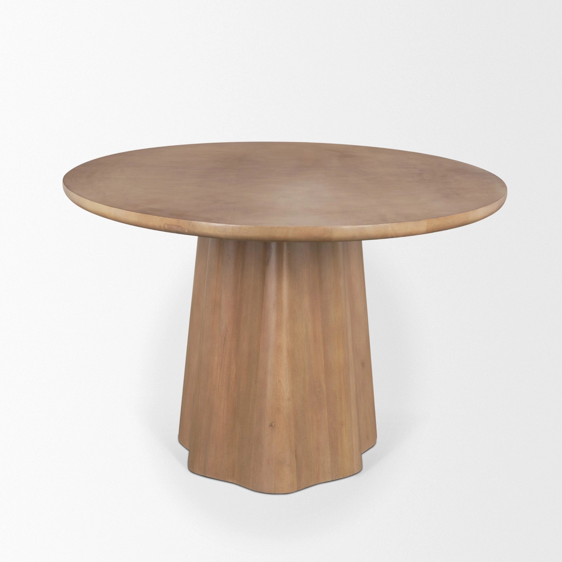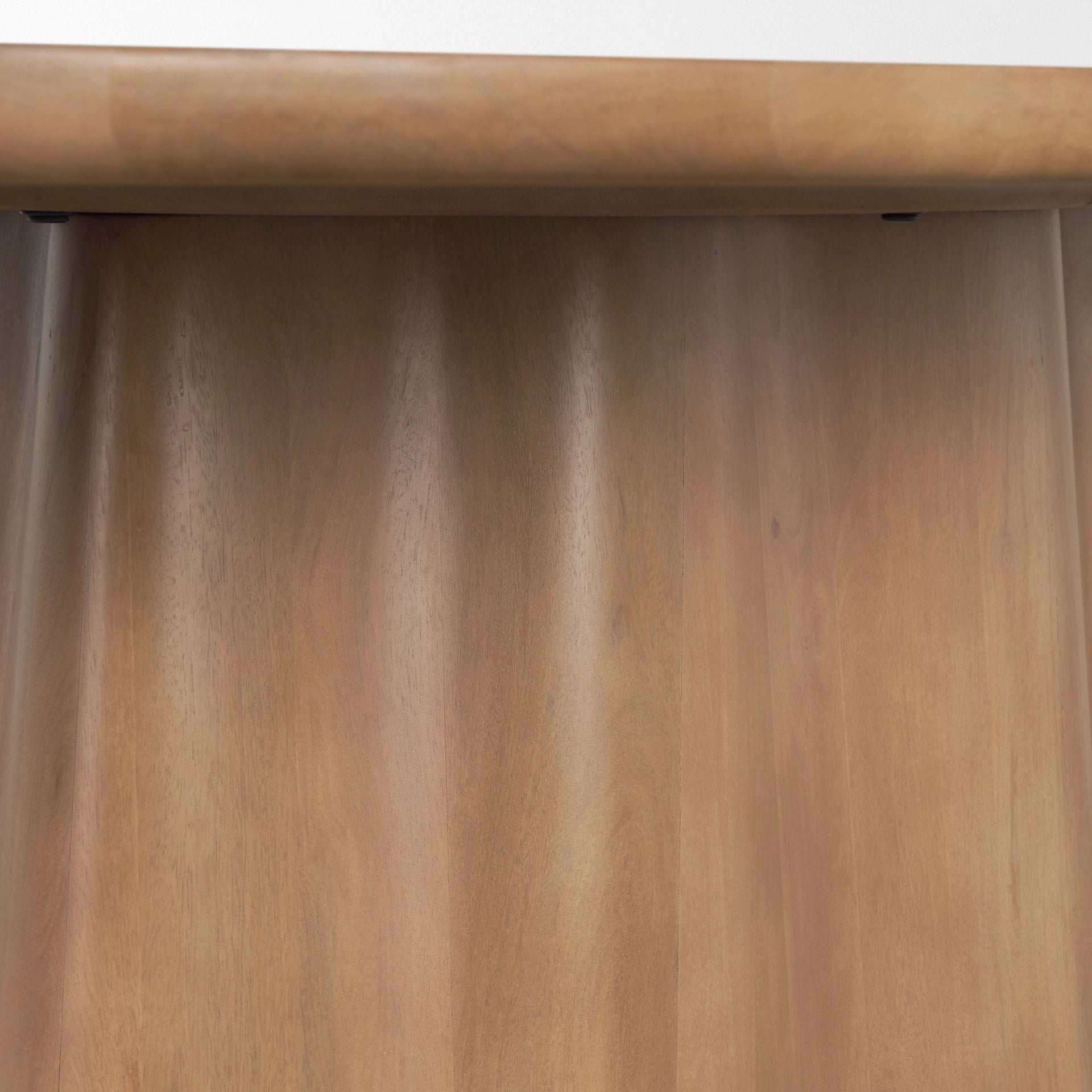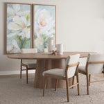 Jovani Oval Dining Table is constructed from smooth, light brown wood with organic curves, featuring a wide scalloped base.