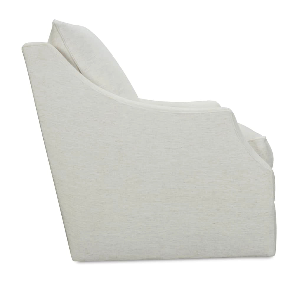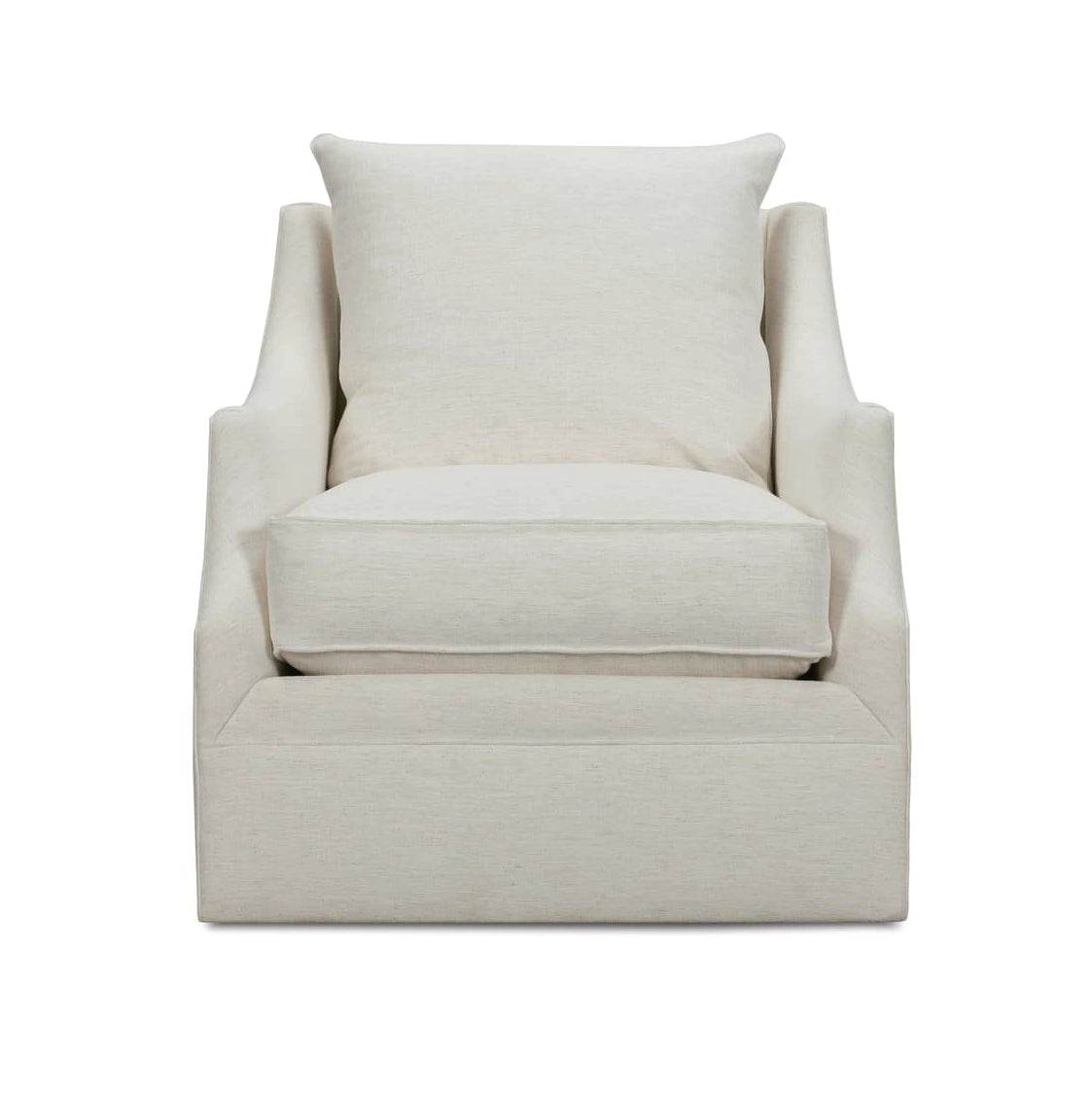 The Kara Swivel Chair is an updated design with clean lines and stylish comfort. Featured in Crypto's top-selling Nomad Snow fabric. This remarkably durable and soft cover is stain and odor resistant with a fine chenille weave. It is environmentally friendly and has earned a GREENGUARD® Gold Certification. Cushion: Cloud Cushion.