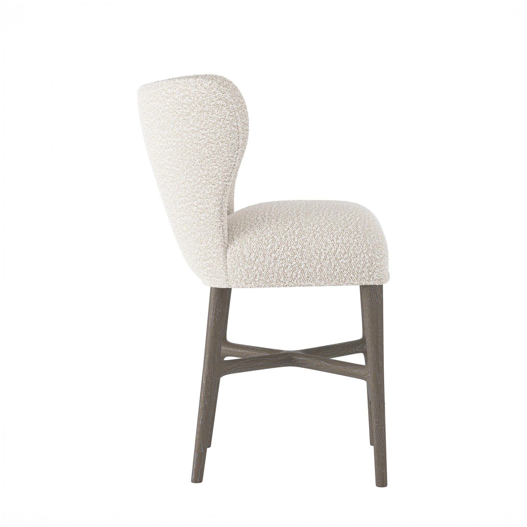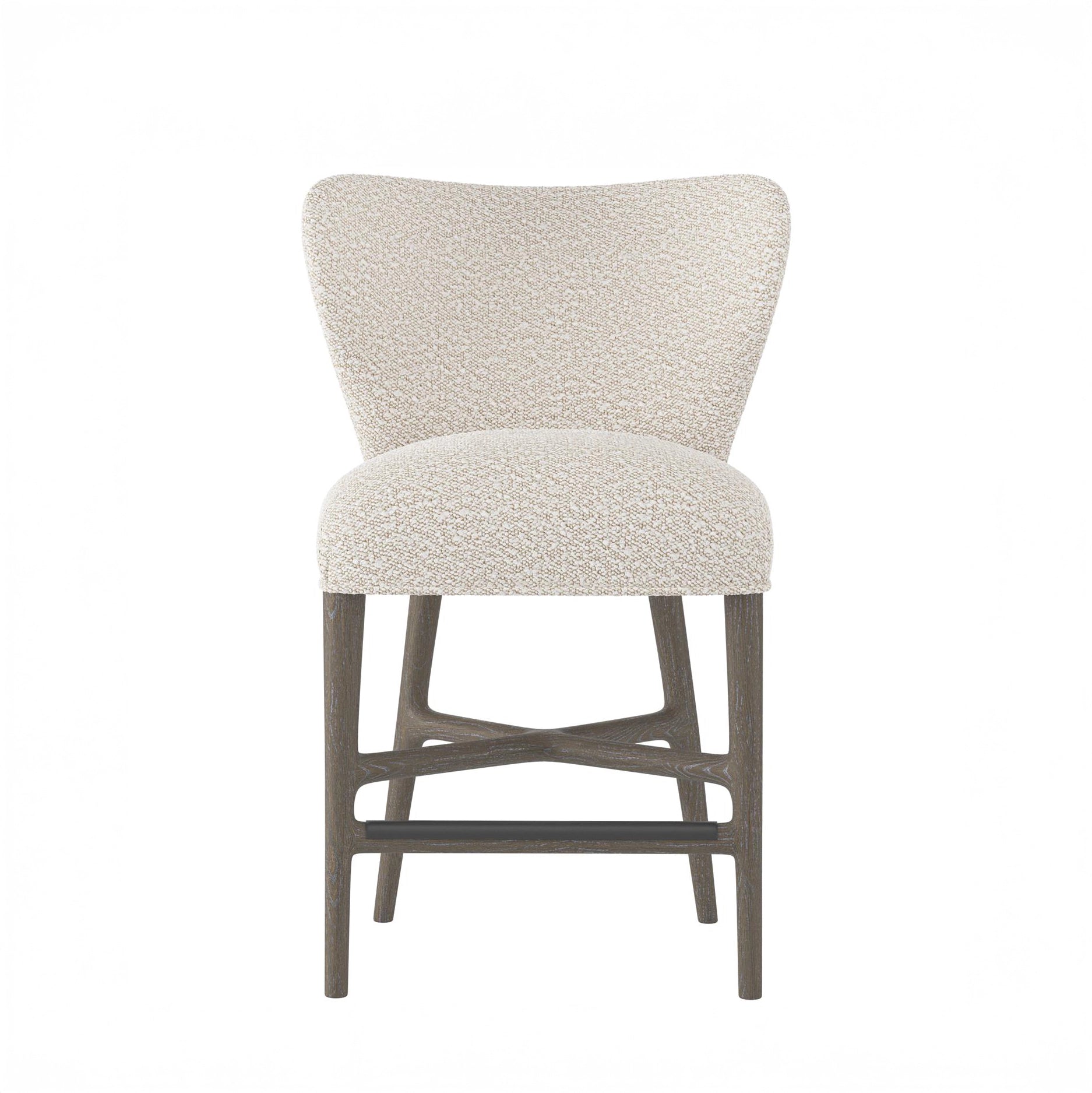 A classic wingback chair is reimagined for a more modern style in the Kemp counter stool. The fully upholstered seat is supported by a wire-brushed wood frame that is available in three finishes: Cocoa, Portobello and Smoke.