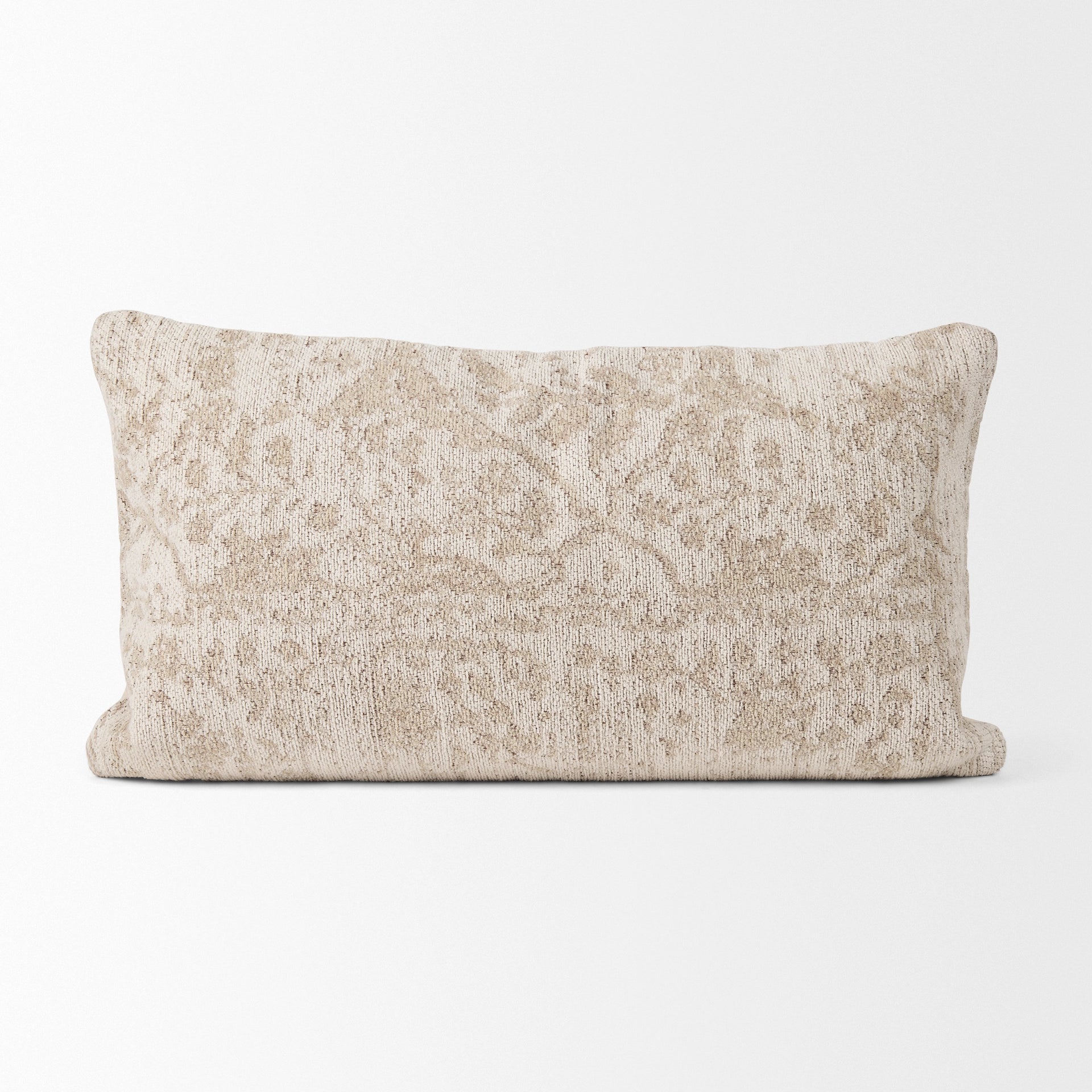 The Khloe Pillow Cover is a cream lumbar pillow cover made of jaquard woven cotton chenille.Includes feather pillow insert.