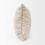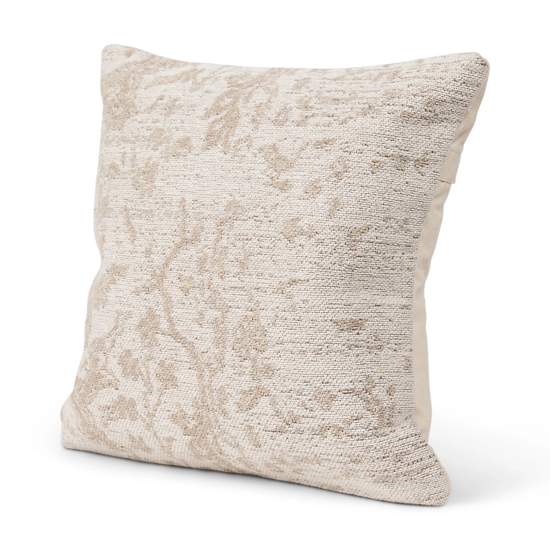 The Kloe Pillow Cover is a square, cream pillow cover made of jaquard woven cotton chenille. Includes feather pillow insert.