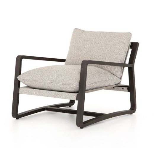 The perfect place to take in the sunrise or sunset. Bronze-finished aluminum frames deep, low seating covered in an invitingly neutral ash. Cover or store indoors during inclement weather and when not in use.