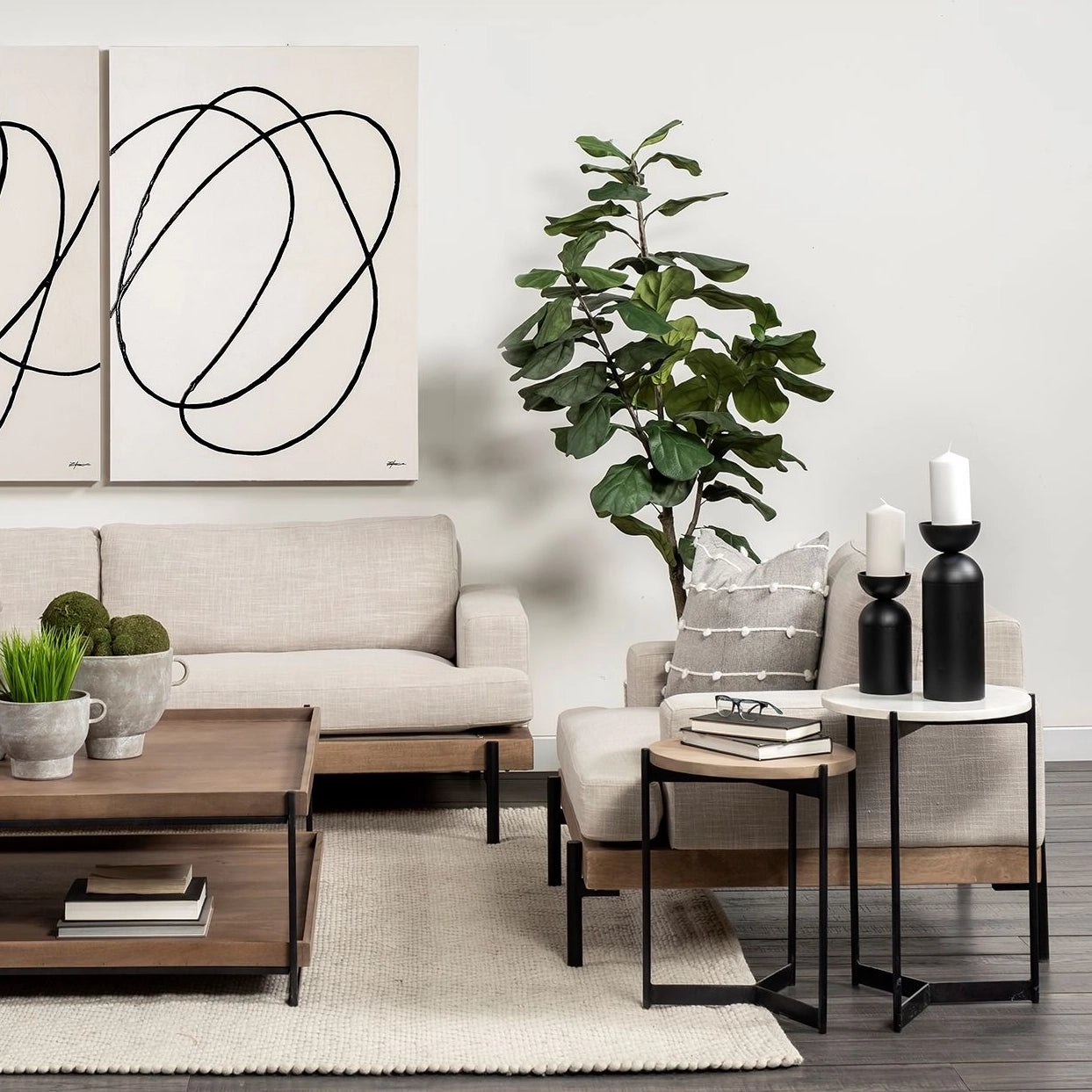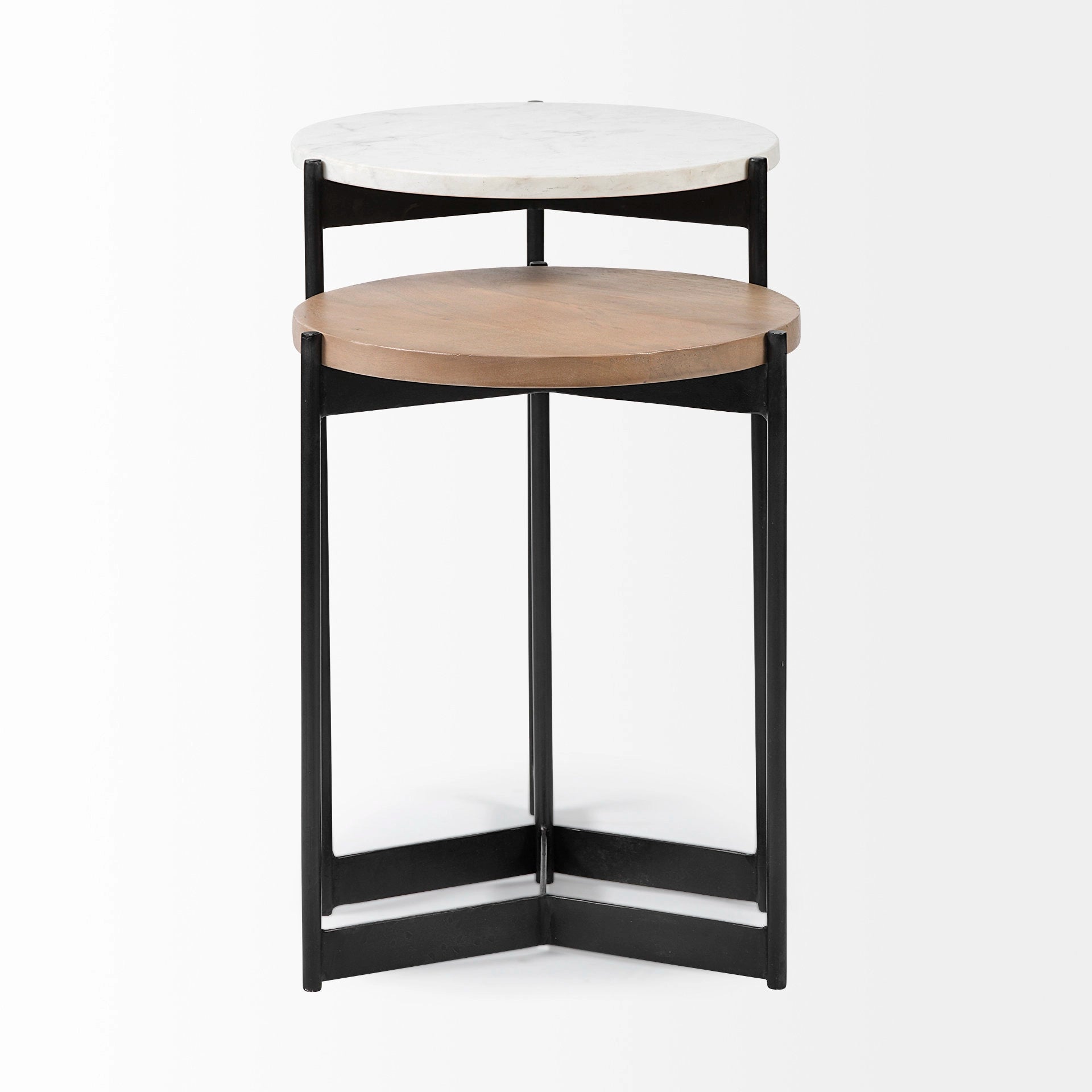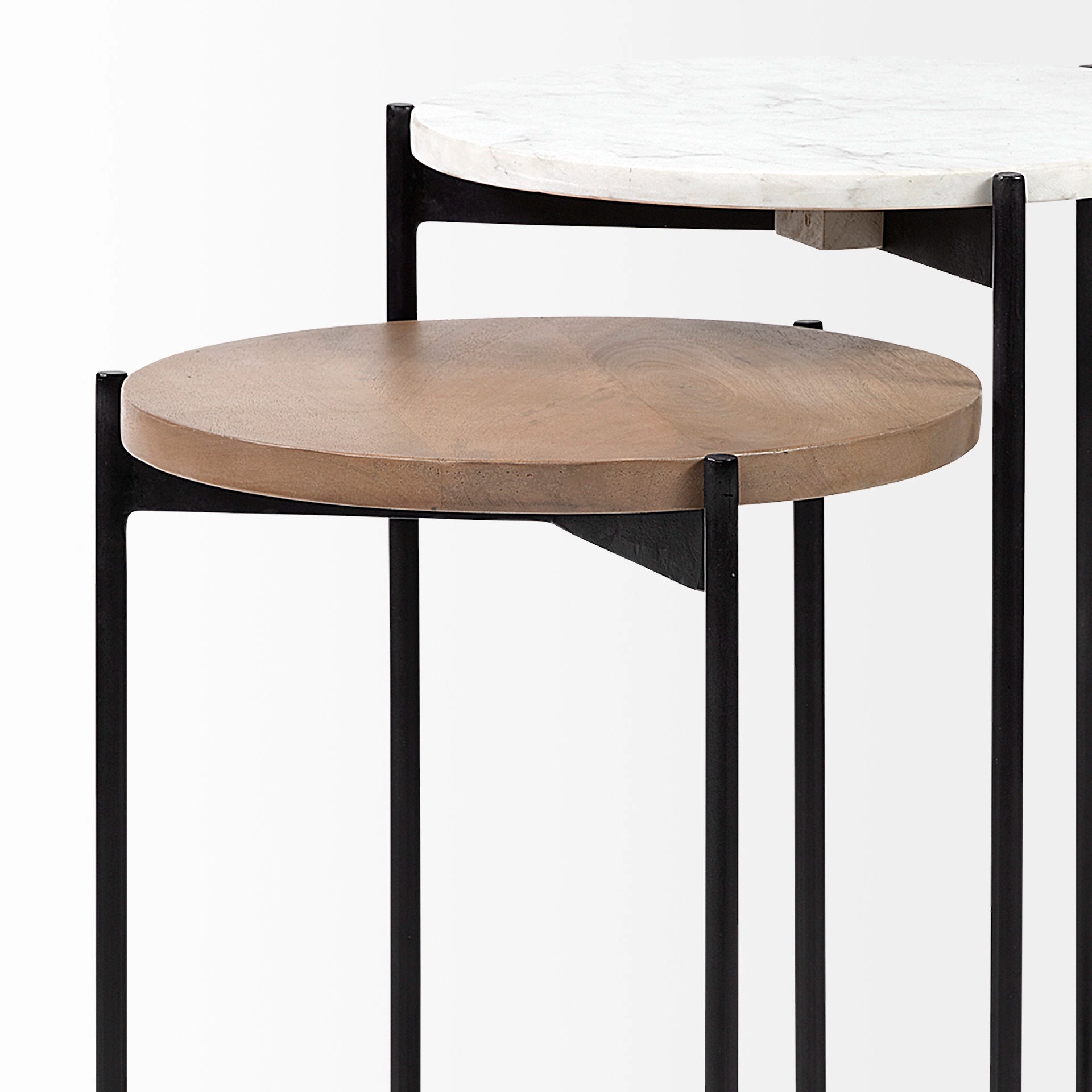 Larkin II Marble and Medium Brown Wood Round Tabletop Nesting End/Side Tables