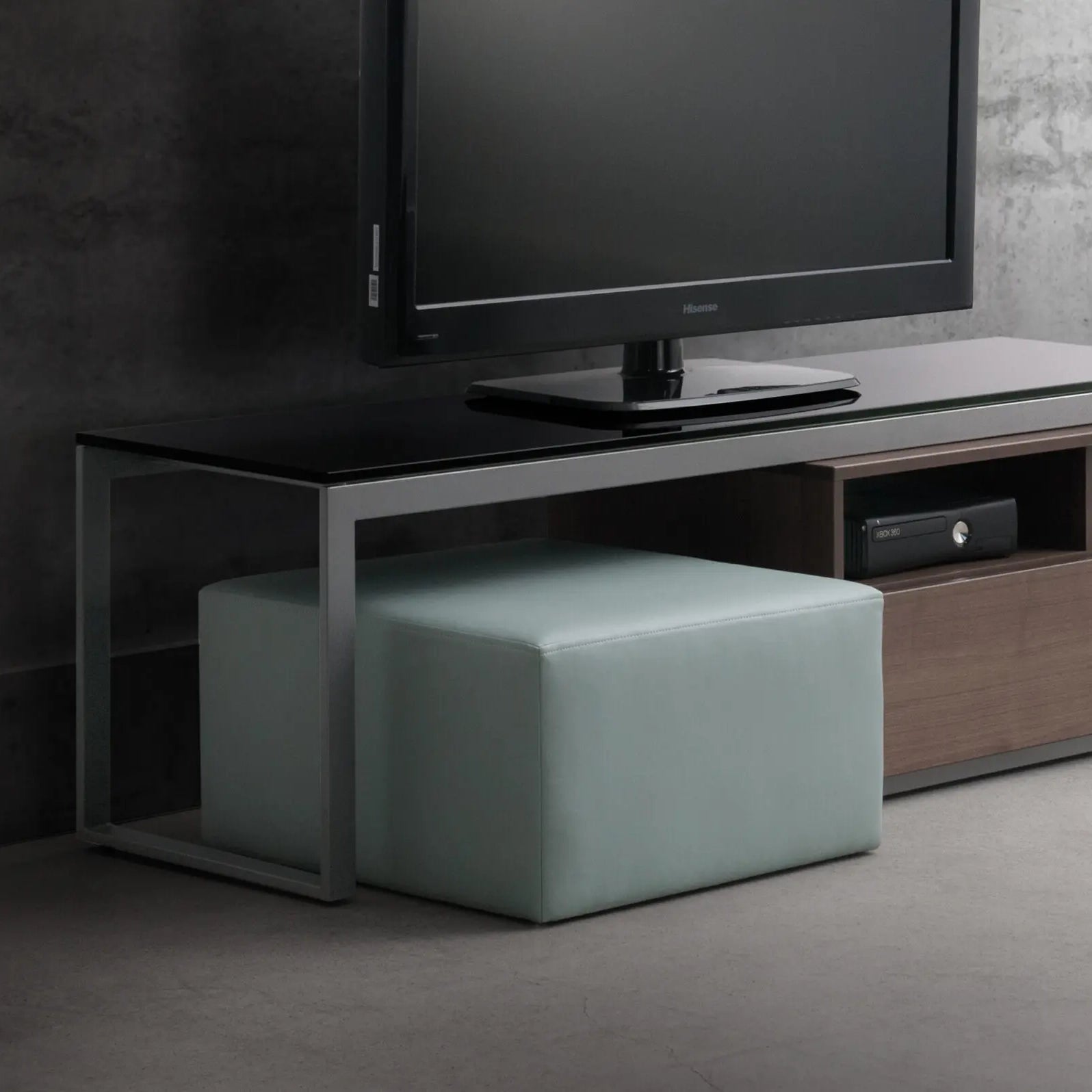 Trica's pouf is a multifunctional ottoman available in multiple sizes. This versatile piece of furniture is offered in various finishes and can be customized with a wide selection of fabrics to fit any living space.