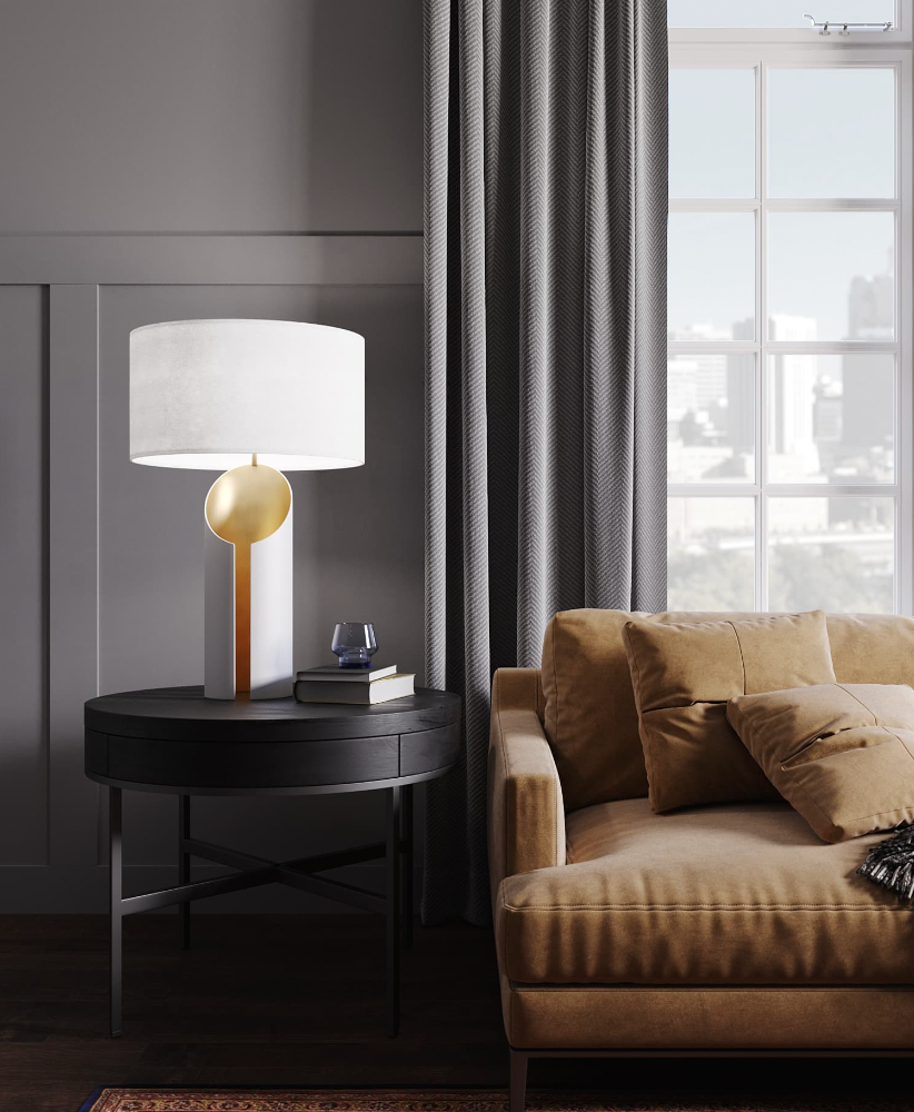 An organic silhouette combines with warm Antique Brass and cool Matte White for a look that’s inviting and casually elegant. Place this modern piece on a living room side table to act as a bright accent in a room of bold design. Design note: The cord comes out of the socket.