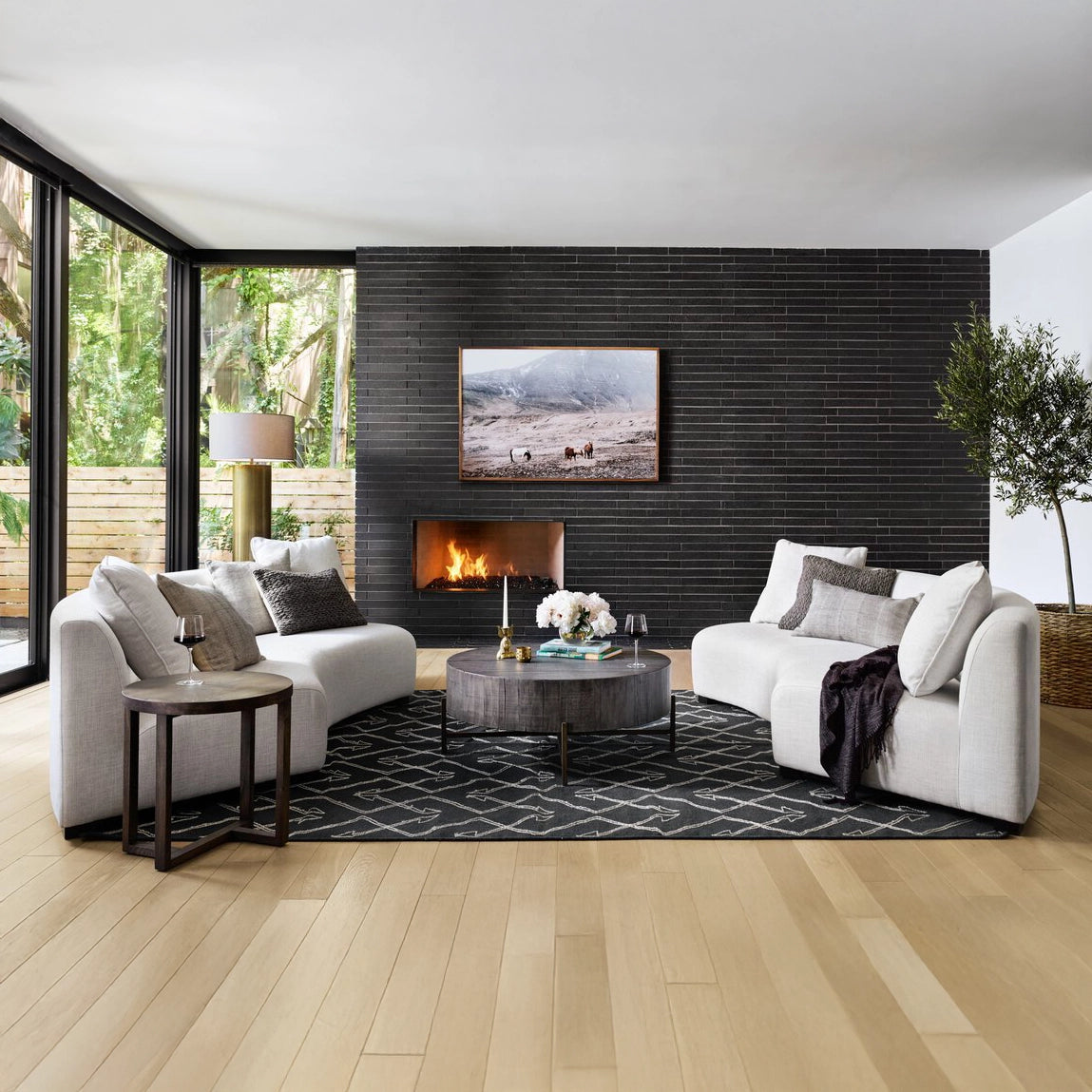 Eye-catching at every curve. A sophisticated take on sleek Italian design, cream linen-blend upholstery fashions an elongated crescent, bringing shapely effect to the modular sectional. Pieces can be positioned to form a large or small crescent, granting options to suit a space.