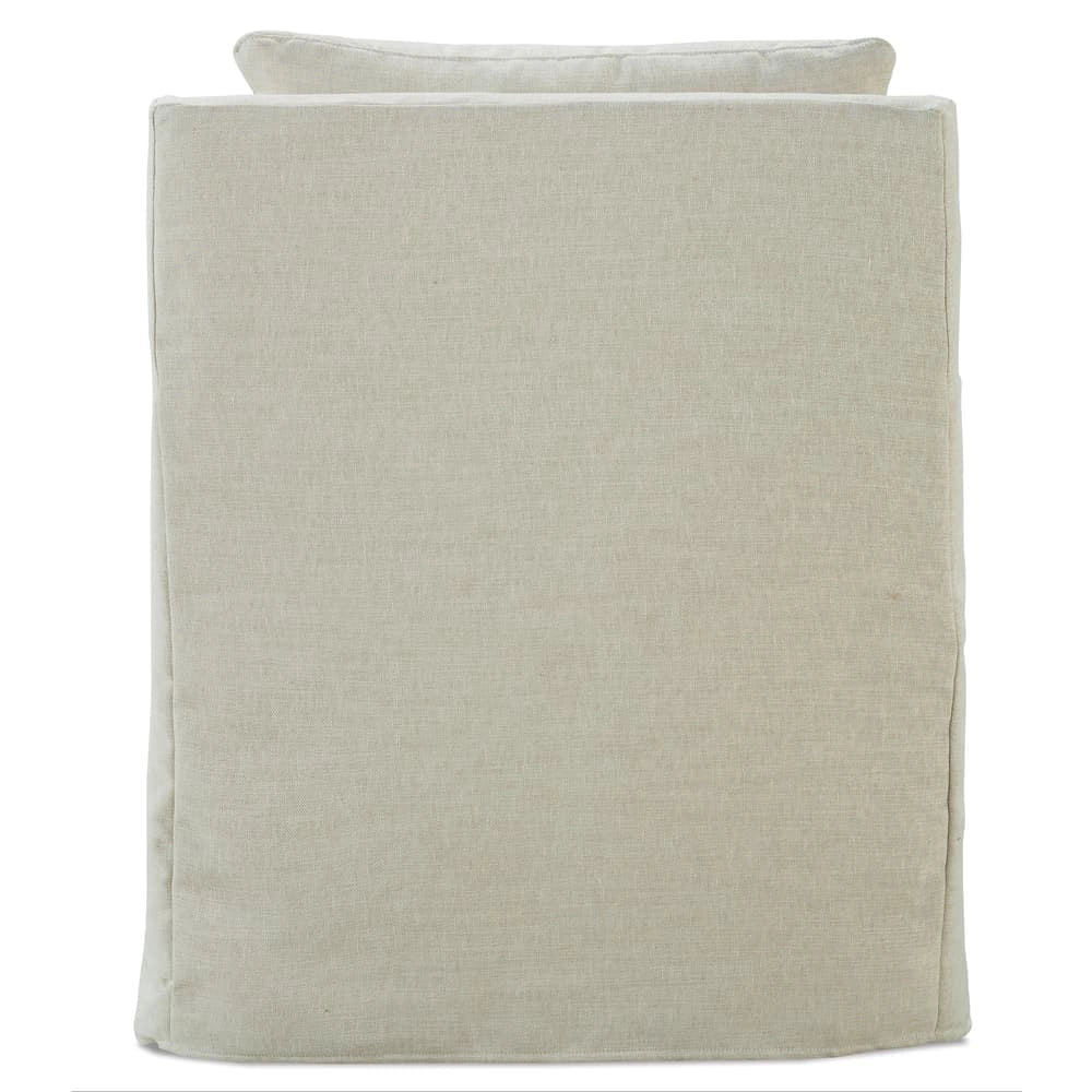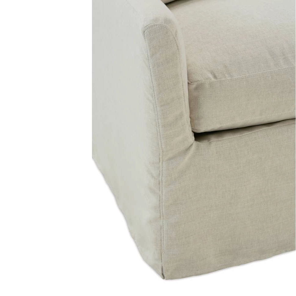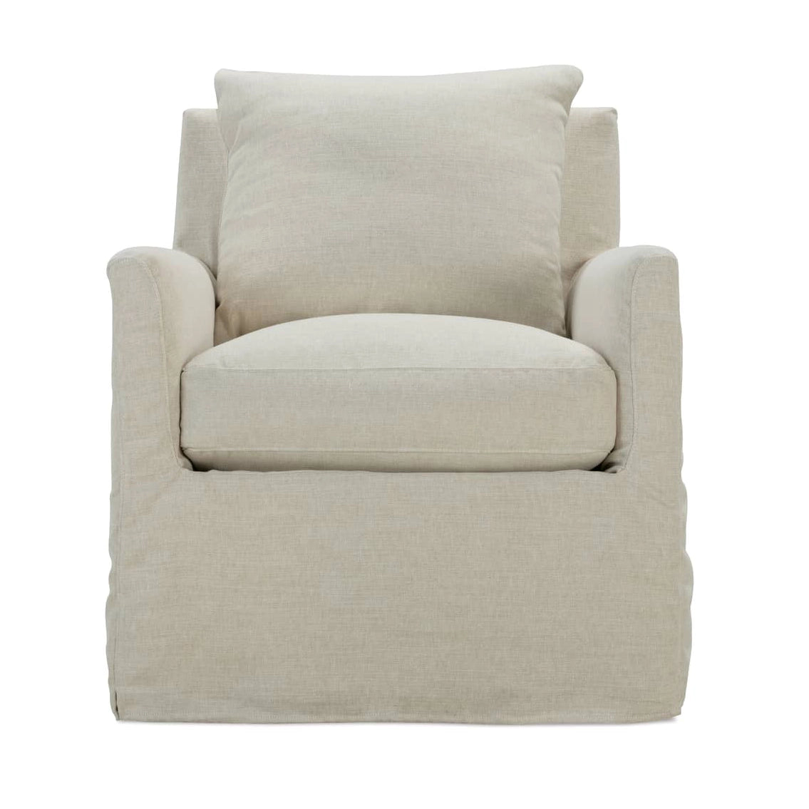 Elegantly-thin track arms work their way down into slipcovered skirted bottom on the Lilah swivel. It's tailored and timeless, while the loose seat and back cushion provide additional comfort and ease.