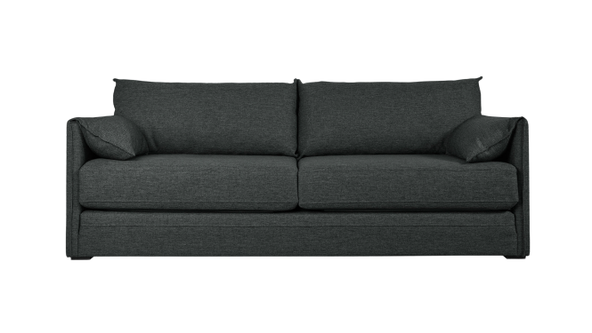The Japanese word "neru" means "to sleep or lie down”. Our Neru Sofabed was designed with this in mind - prioritizing both comfort and style to create a sofa that has you covered 24/7. During the day, feather-filled back cushions and integrated bolsters create a cozy place for power naps or lounging. At night, a simple, origami-like fold-out function reveals a queen-size bed to welcome overnight guests. French-seam detailing on the slender arms adds elegance and style.