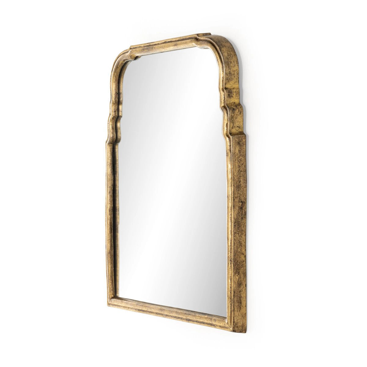 A gold-leaf frame evokes a found vintage look for this petite wall mirror. Classical flair with a unique, detailed shape, accented by a thin frame profile.