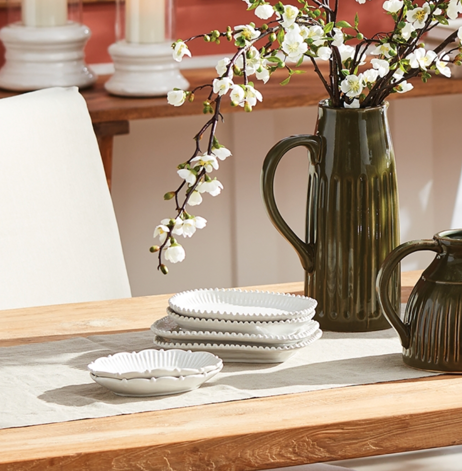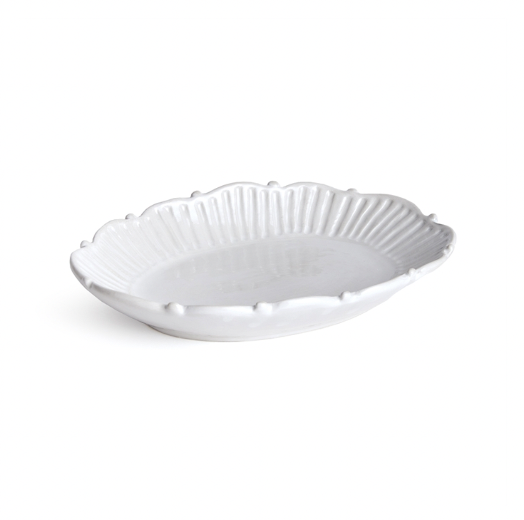 This adorable canapé plate with decorative rim is great for small homemade treats. In a crisp white, it fits in beautifully with any color palette.
