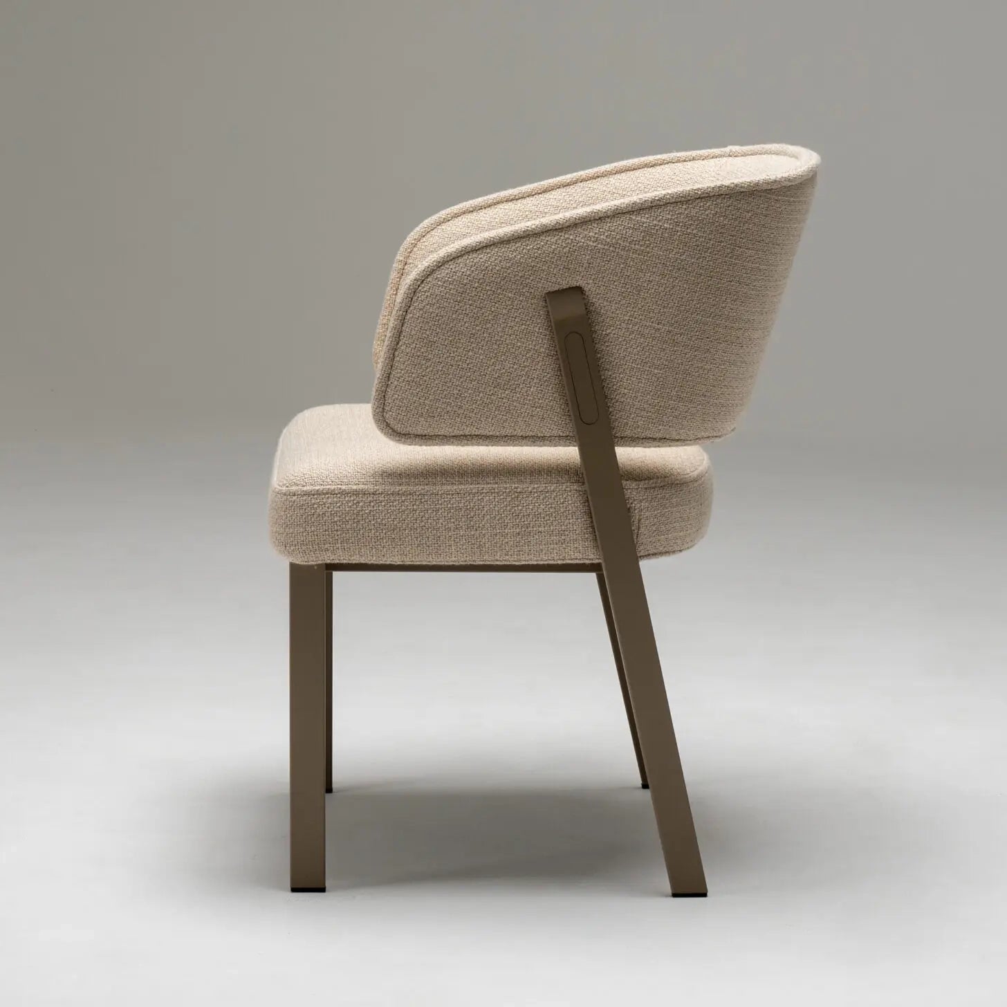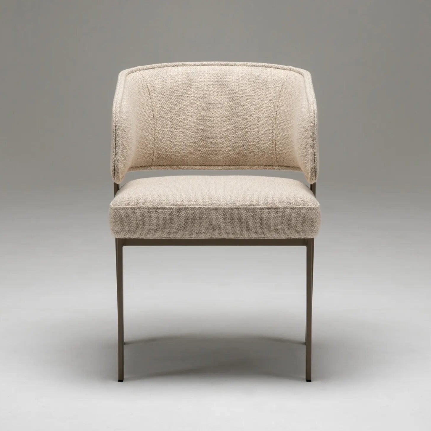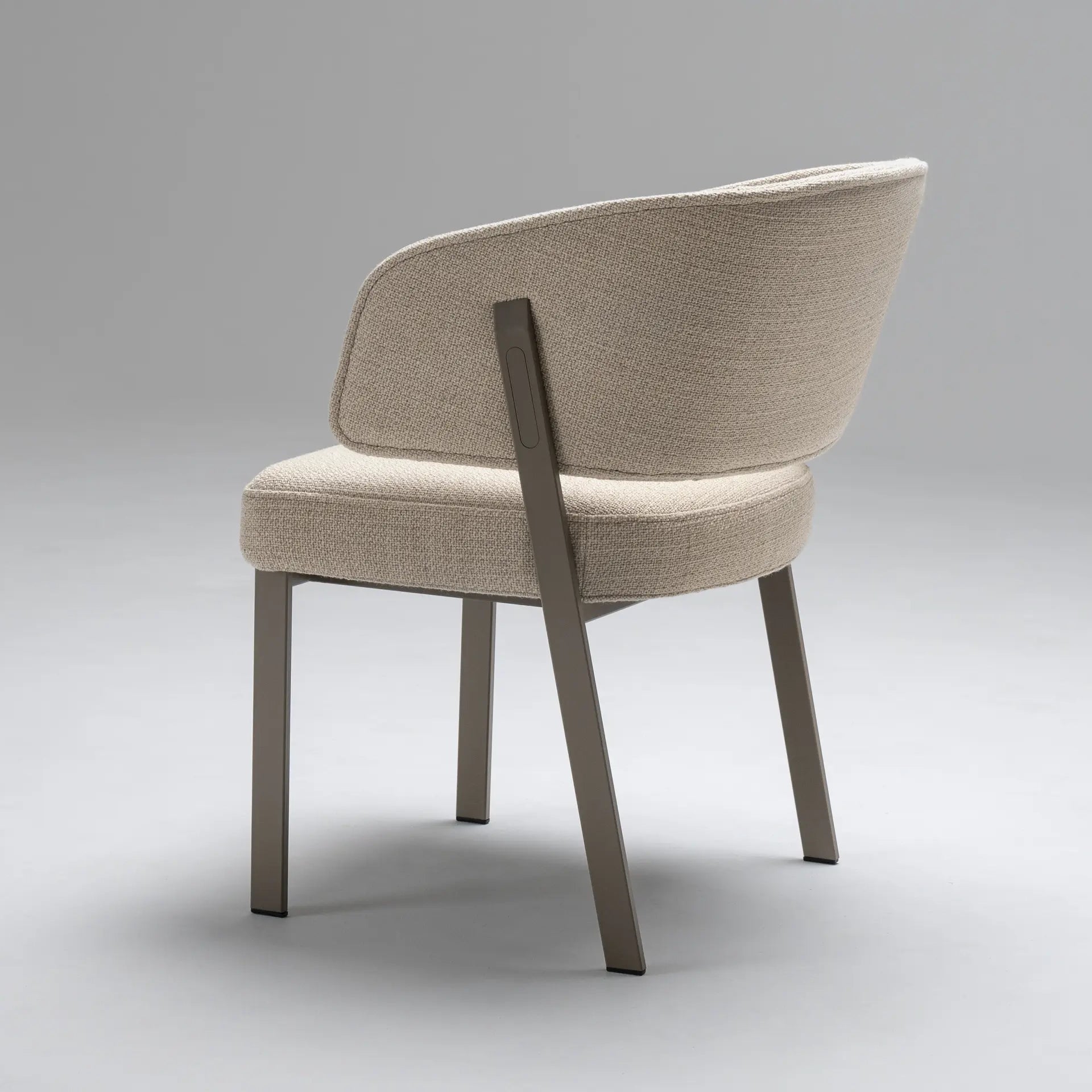 The Madison chair features a contemporary style with clean lines and a minimalist structure. This wrap-around chair has short armrests integrated into the extension of the backrest. The slim and straight legs give it an appearance that is both sturdy and delicate without compromising comfort.