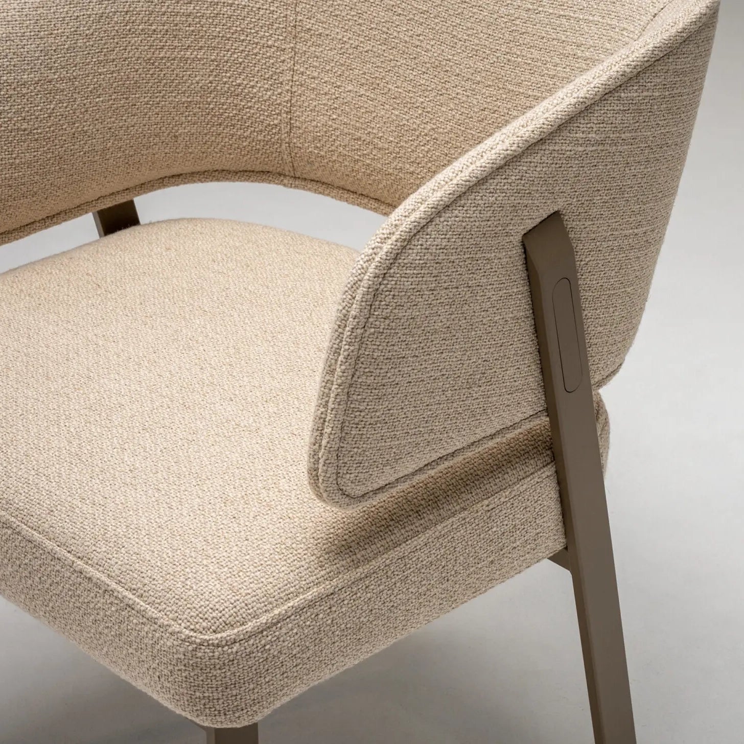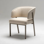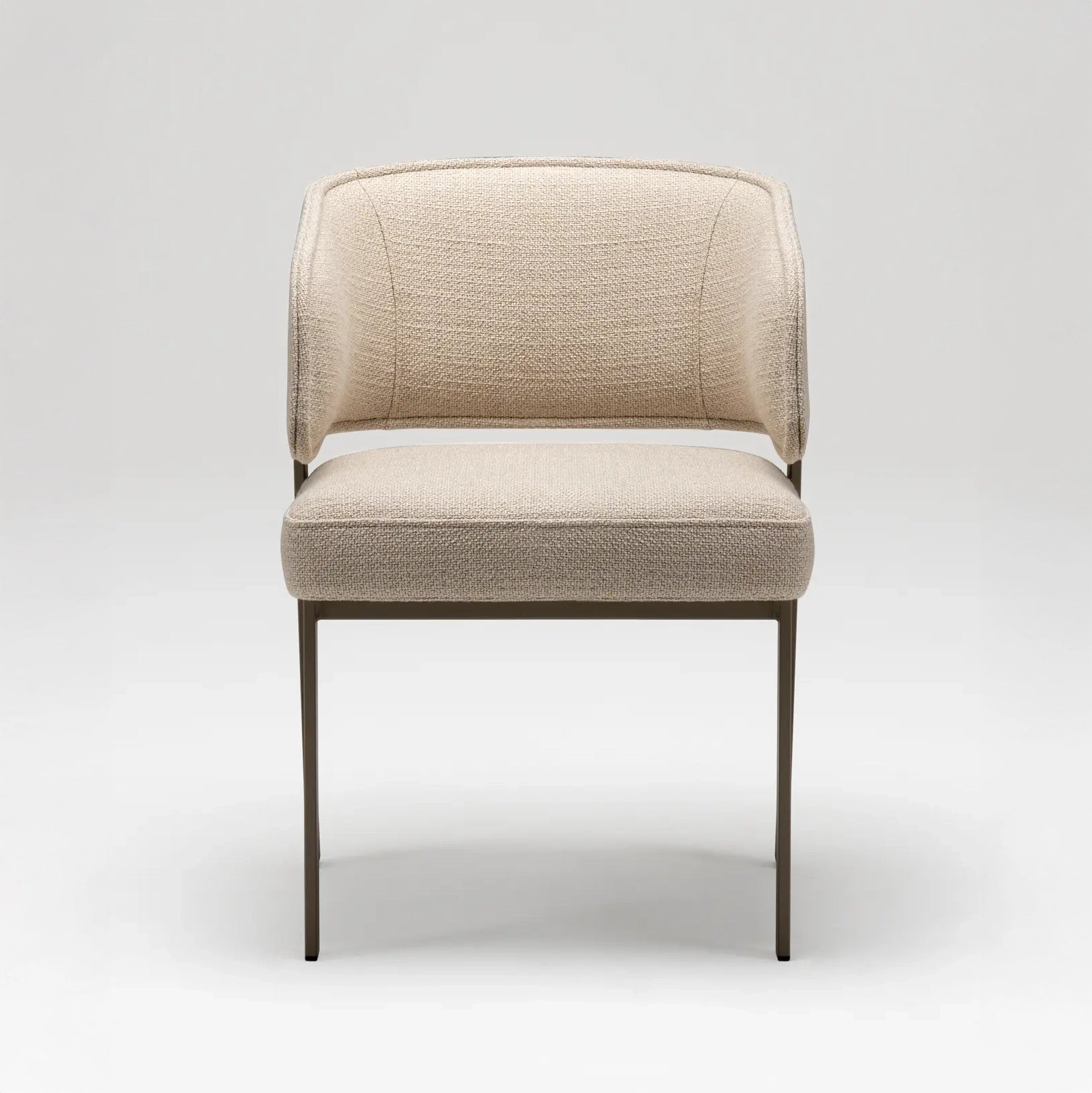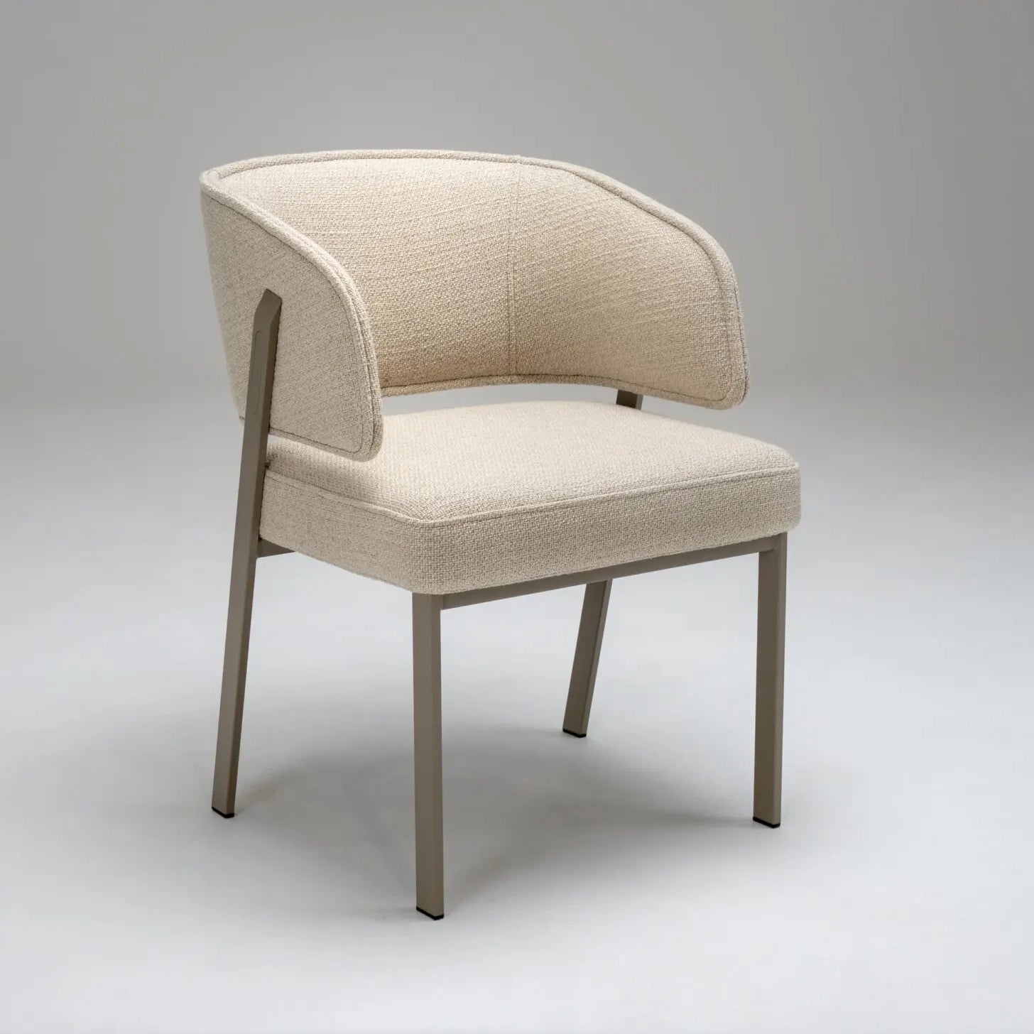 The Madison chair features a contemporary style with clean lines and a minimalist structure. This wrap-around chair has short armrests integrated into the extension of the backrest. The slim and straight legs give it an appearance that is both sturdy and delicate without compromising comfort.