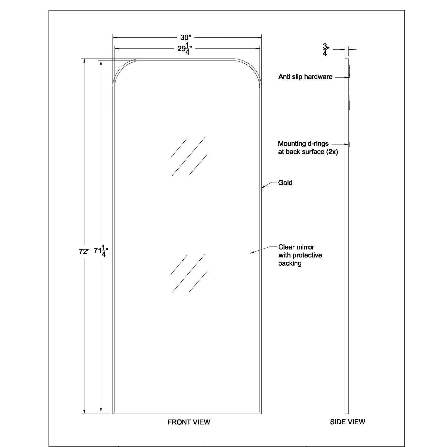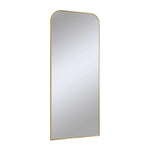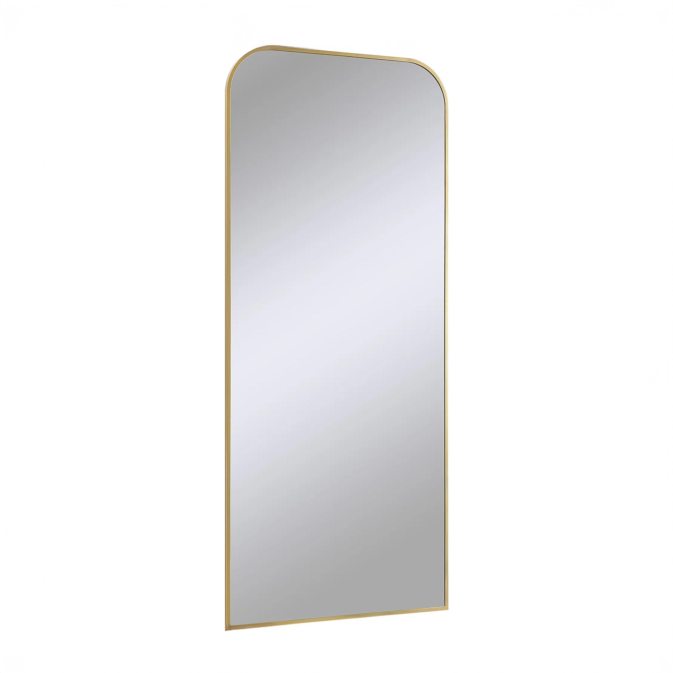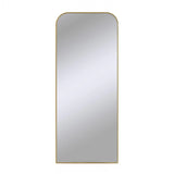 Luxe yet laidback, this towering full-length mirror design completes the designer quality appeal of the home interior. Ideal for a homeowner seeking to elevate and expand the appearance of their living room, bedroom or entryway, this full-length mirror's lustrous quality reaches every corner of the room. Showcasing a power-coated gold frame, this essential accessory fits idyllically in traditionally glamorous mid-century modern and contemporary spaces.