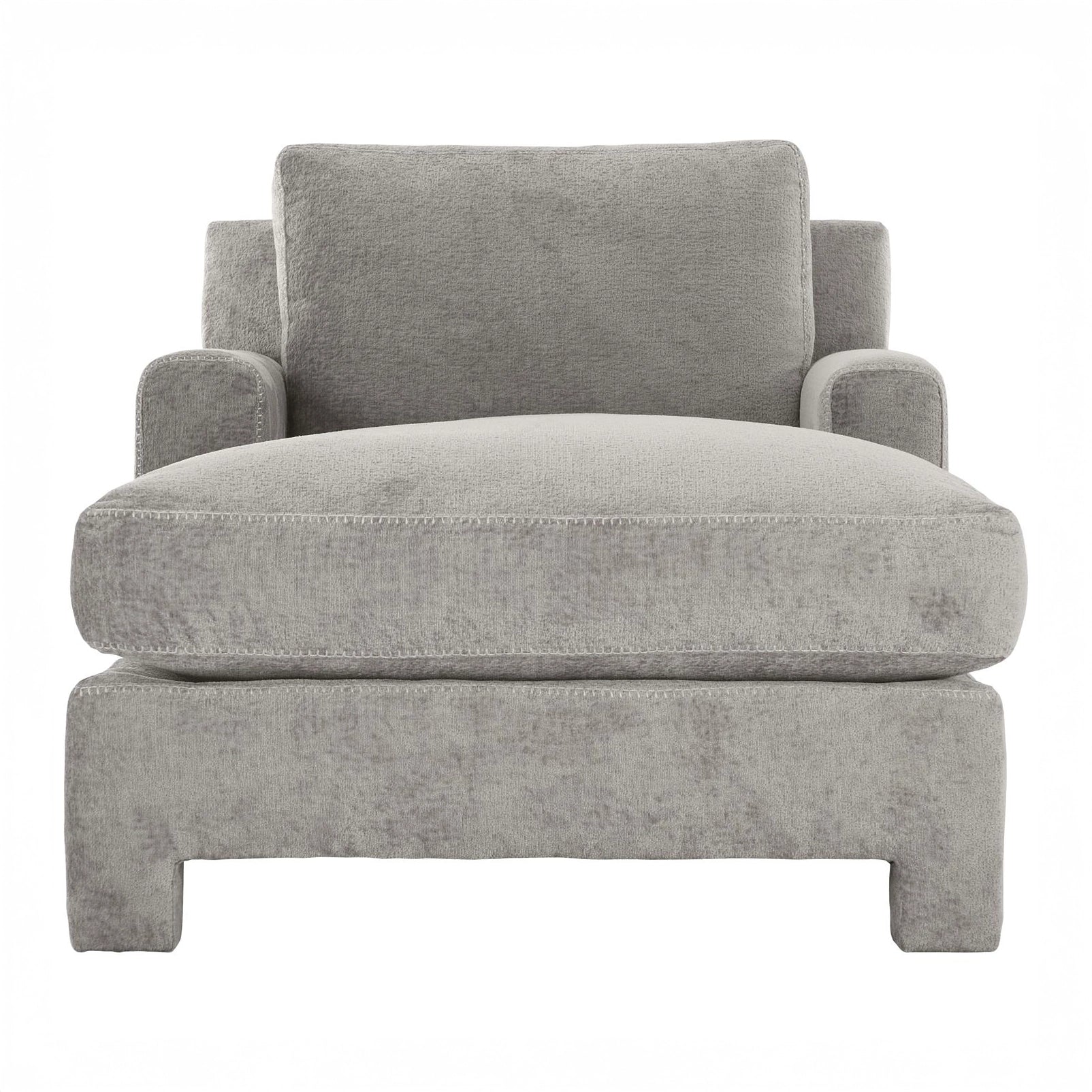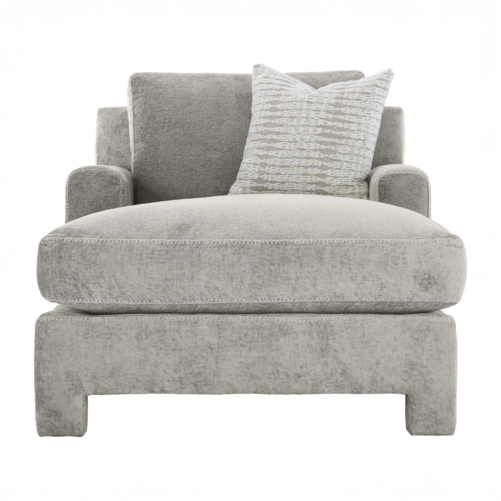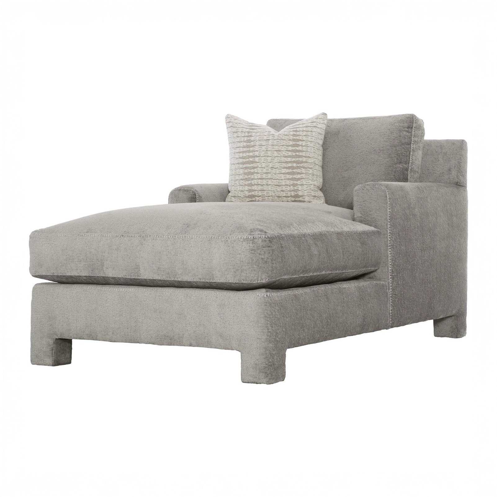 Soft and inviting, this low-profile chaise is fully upholstered in natural fabric and outfitted with a plush feather down cushion.