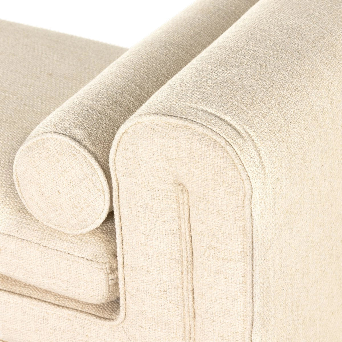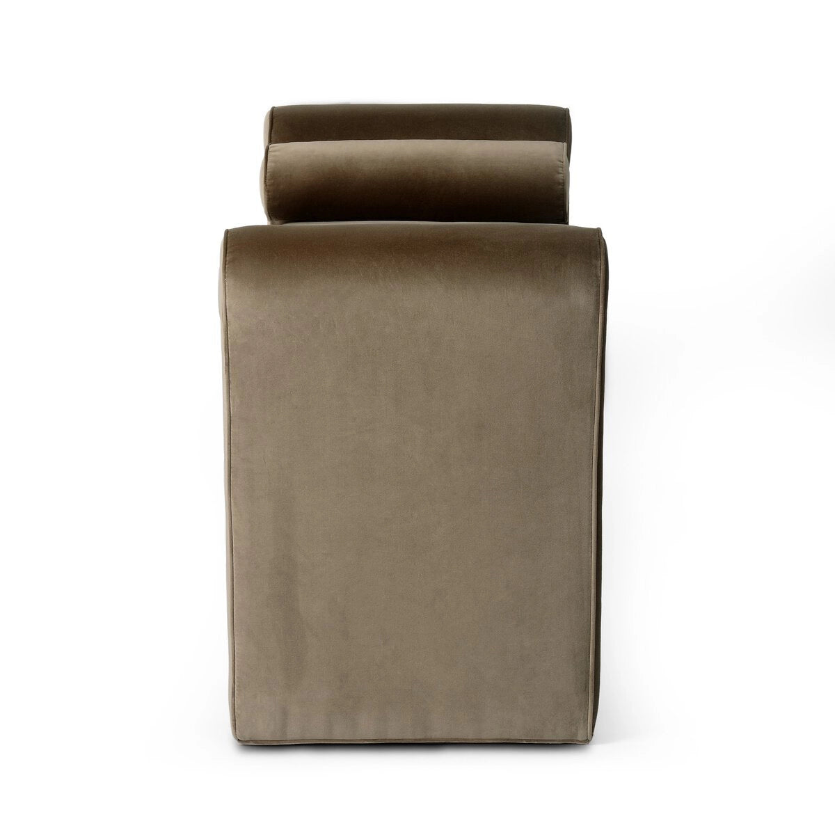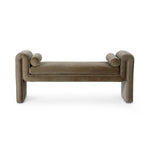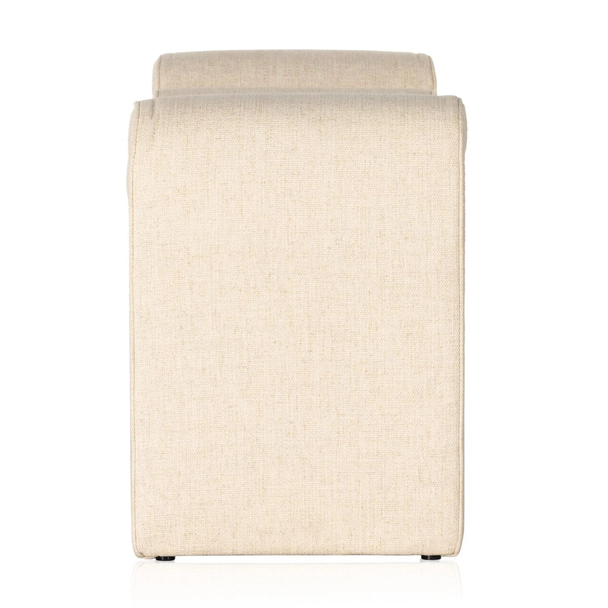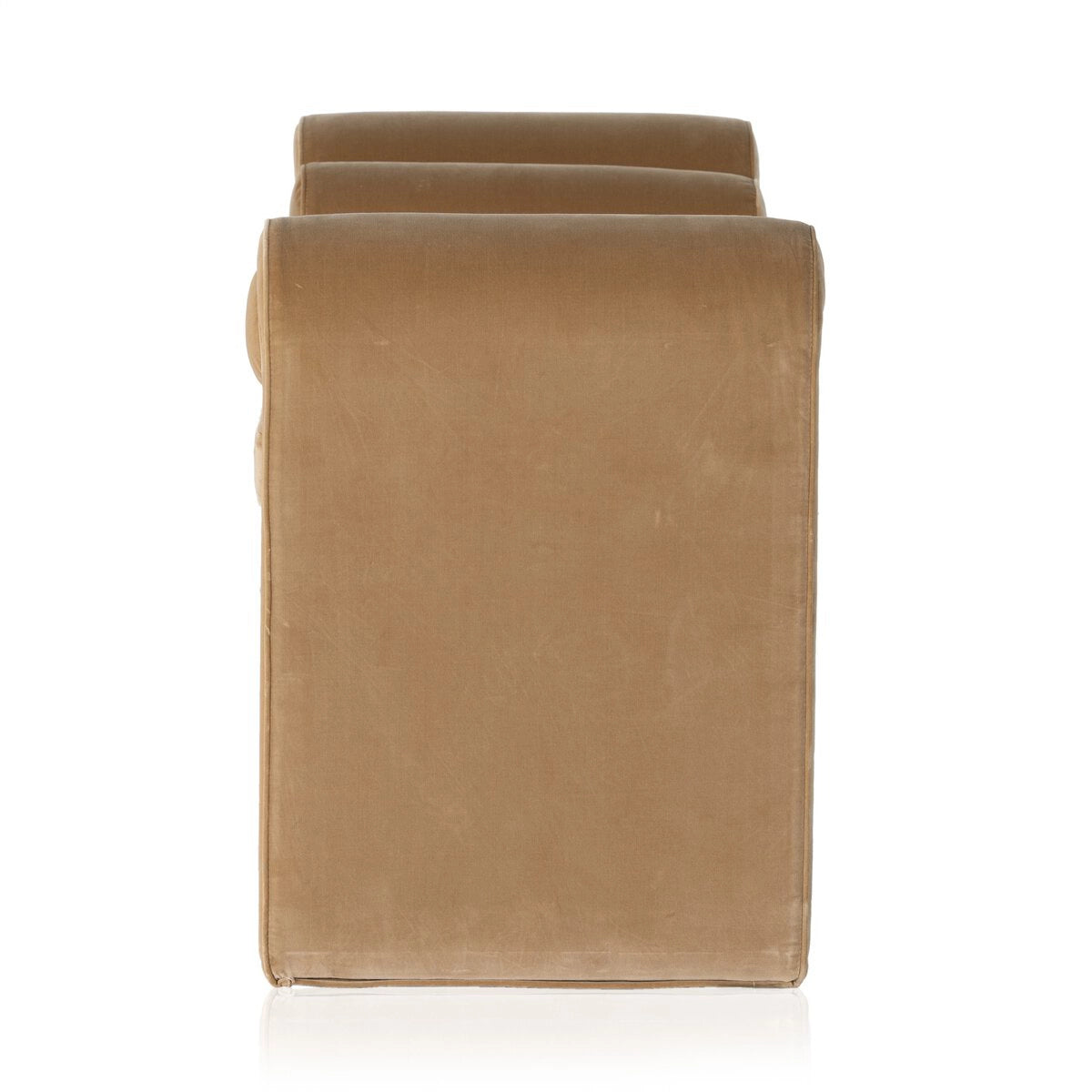 Trendy folded sides complement a comfortable bench-style seat upholstered in a soft, velvety blend.