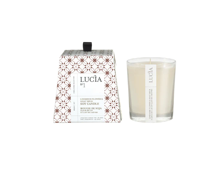 Treat yourself by relaxing in your home or entertaining friends and family with this highly aromatic, natural 100% Soy candle blended with Linseed Flower and sweet Vanilla extract. Burning cleanly for many hours all Lucia candles are a safe and environmentally friendly alternative to existing petroleum based paraffin candles. Our organic Soy is sourced from farming collectives all over the world encouraging fair-trade communities.