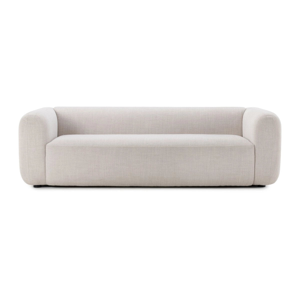 Exaggerated curves create a casual, inviting spot for lounging and gathering. Sofa features clean tailored upholstery in a durable performance fabric. Performance fabrics are specially created to withstand spills, stains, high traffic and wear, ensuring long-term comfort and unmatched durability.