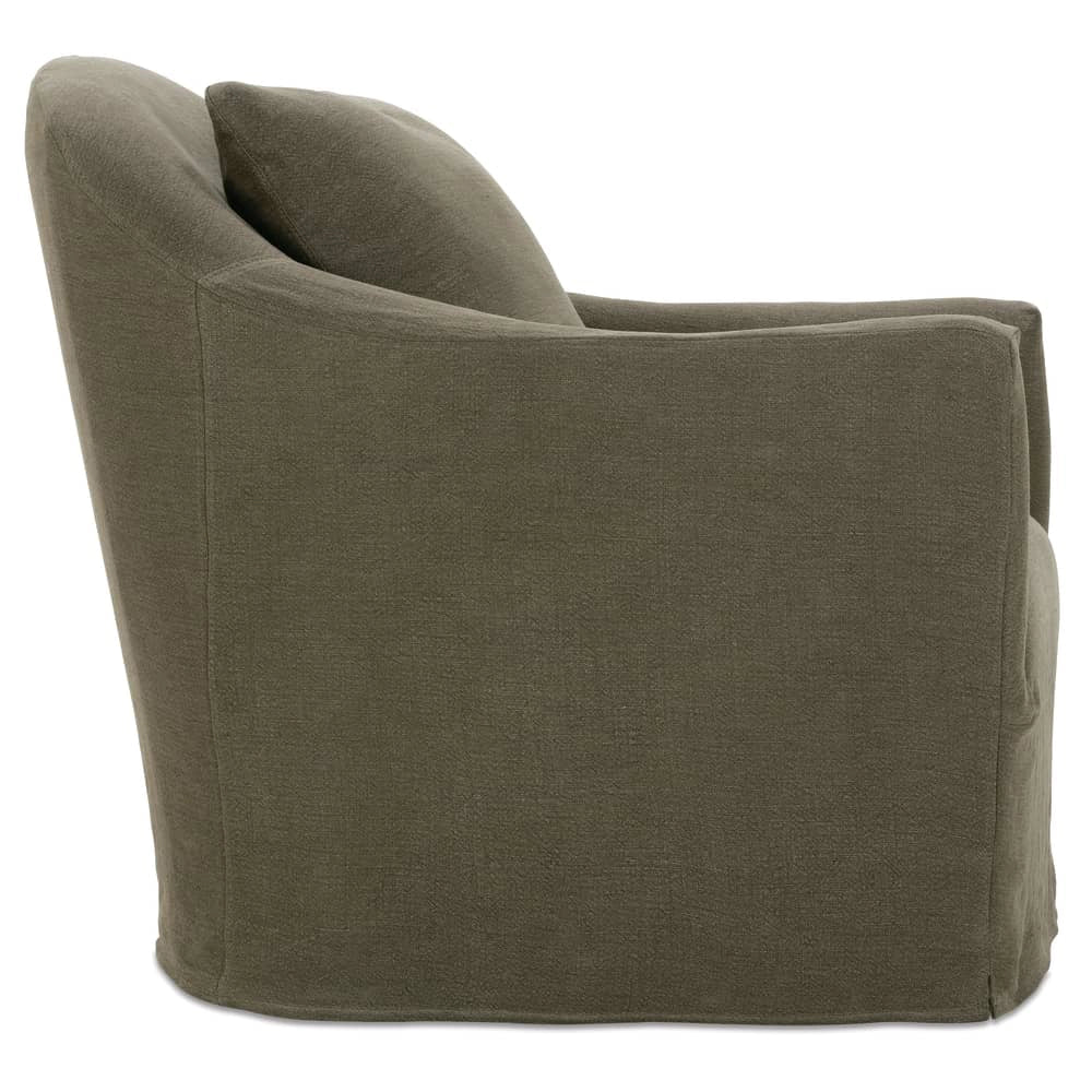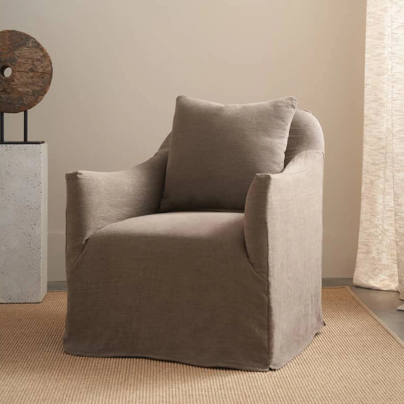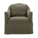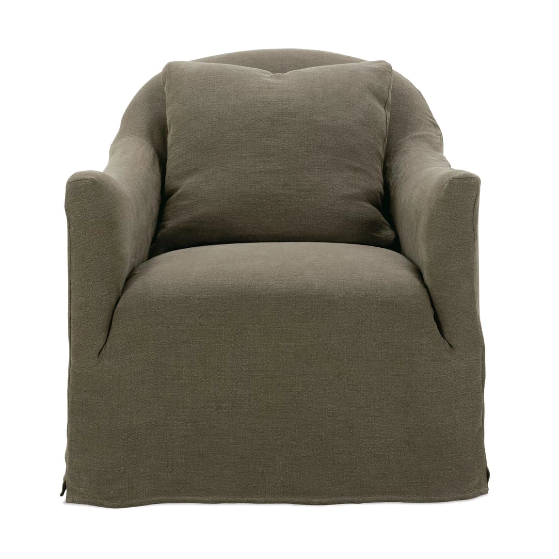 Transitional chair with gently flared arms. Available with or without a slipcover