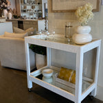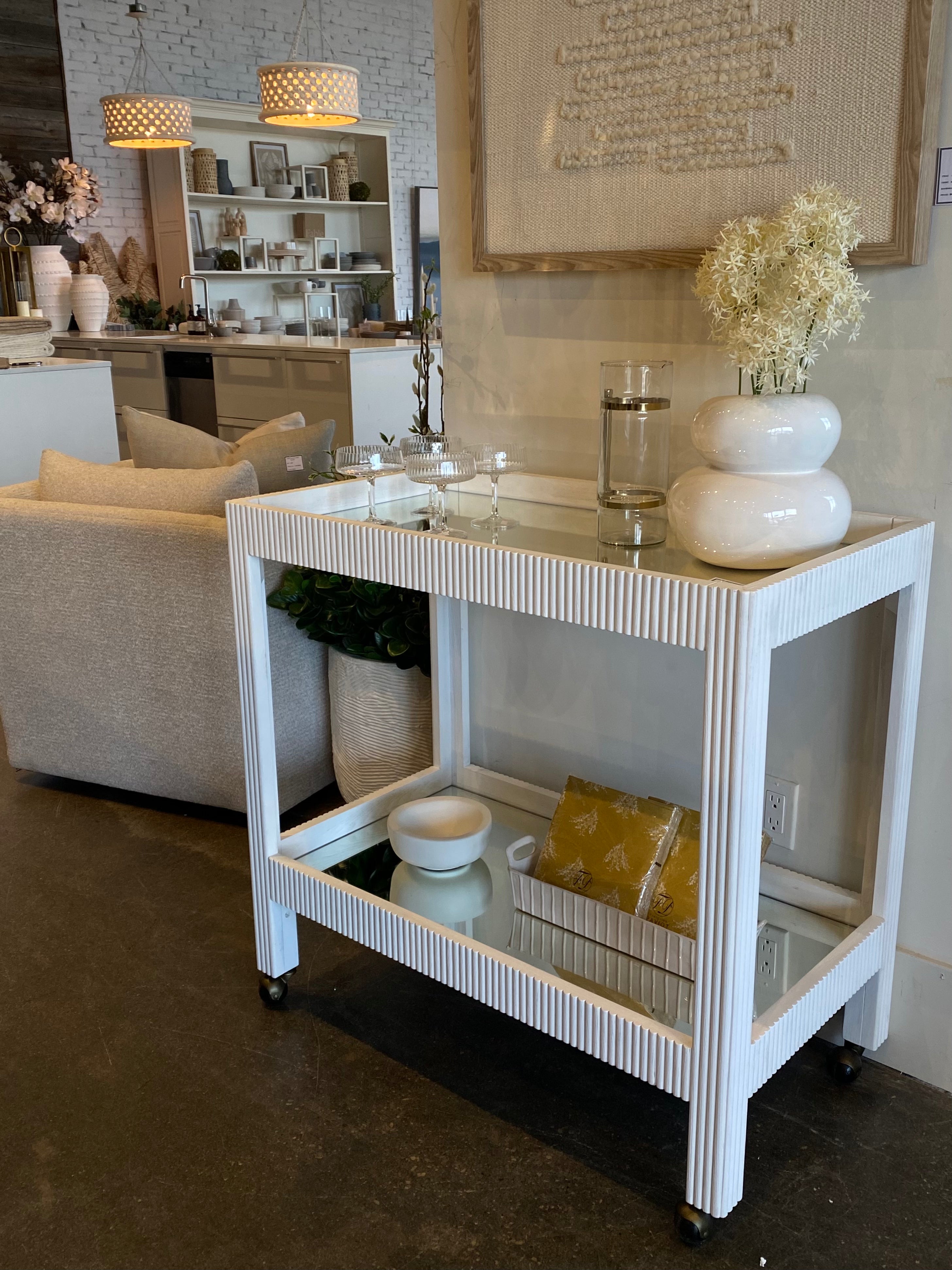 The Otis WWO is the ultimate piece for effortlessly elevating your entertaining and serving experience. Thanks to its ample shelf space, this bar cart can comfortably accommodate a range of beverages, stemware, and serving accessories. Whether you're hosting a casual family gathering or an elegant dinner party, the Otis fluted bar cart in the white washed oak finish is the perfect addition to your entertaining arsenal.
