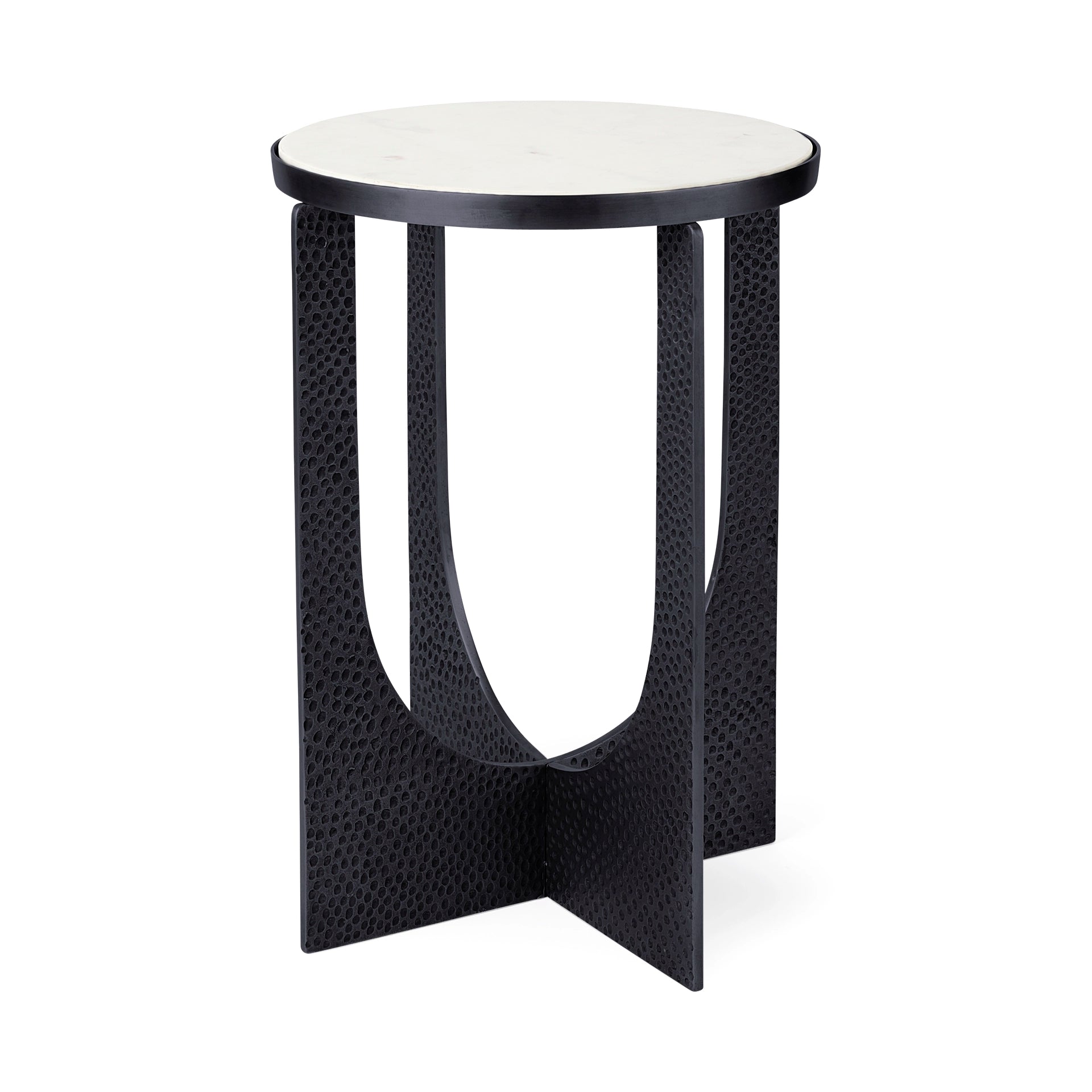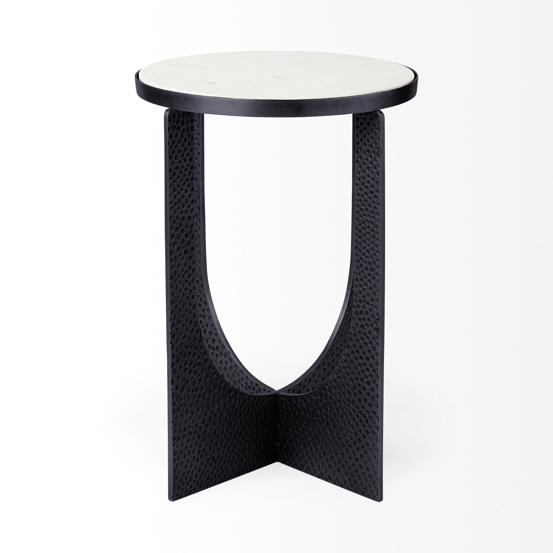 Preston 23"H White Marble Top w/ Matte Black Metal Accent Table