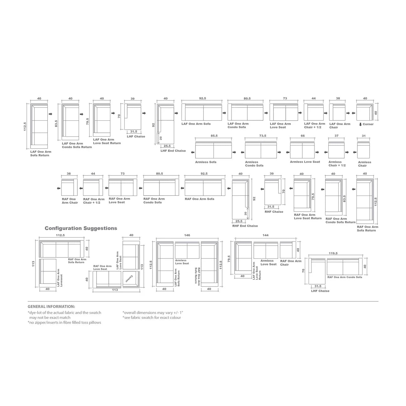 Dimensions: Sofa- 99.5”W X 40”D X 35”H Available in other sizes and configurations